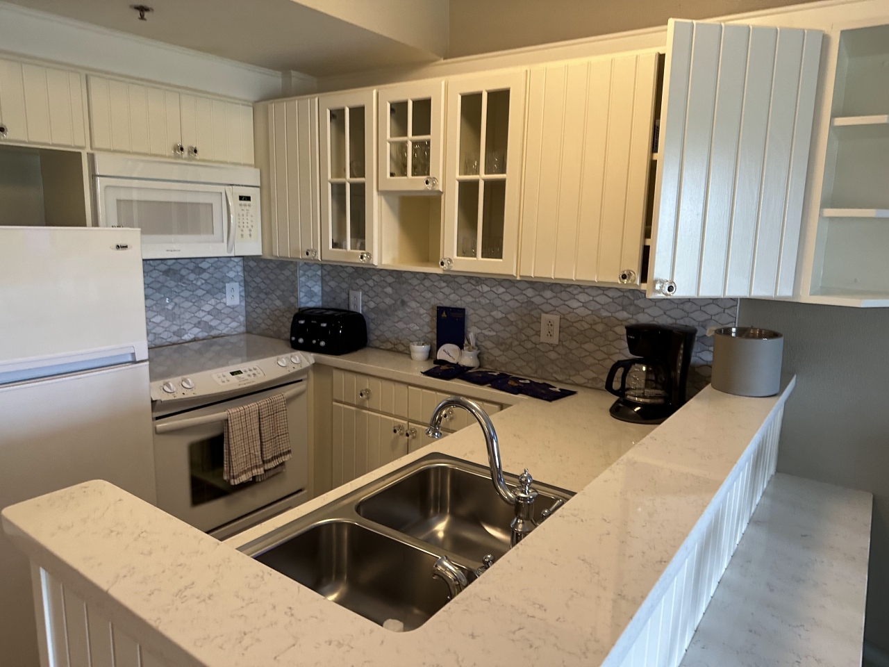 キッチンは冷蔵庫、電子レンジ、IHコンロ、オーブン、食洗機など生活できるレベルの設備があり