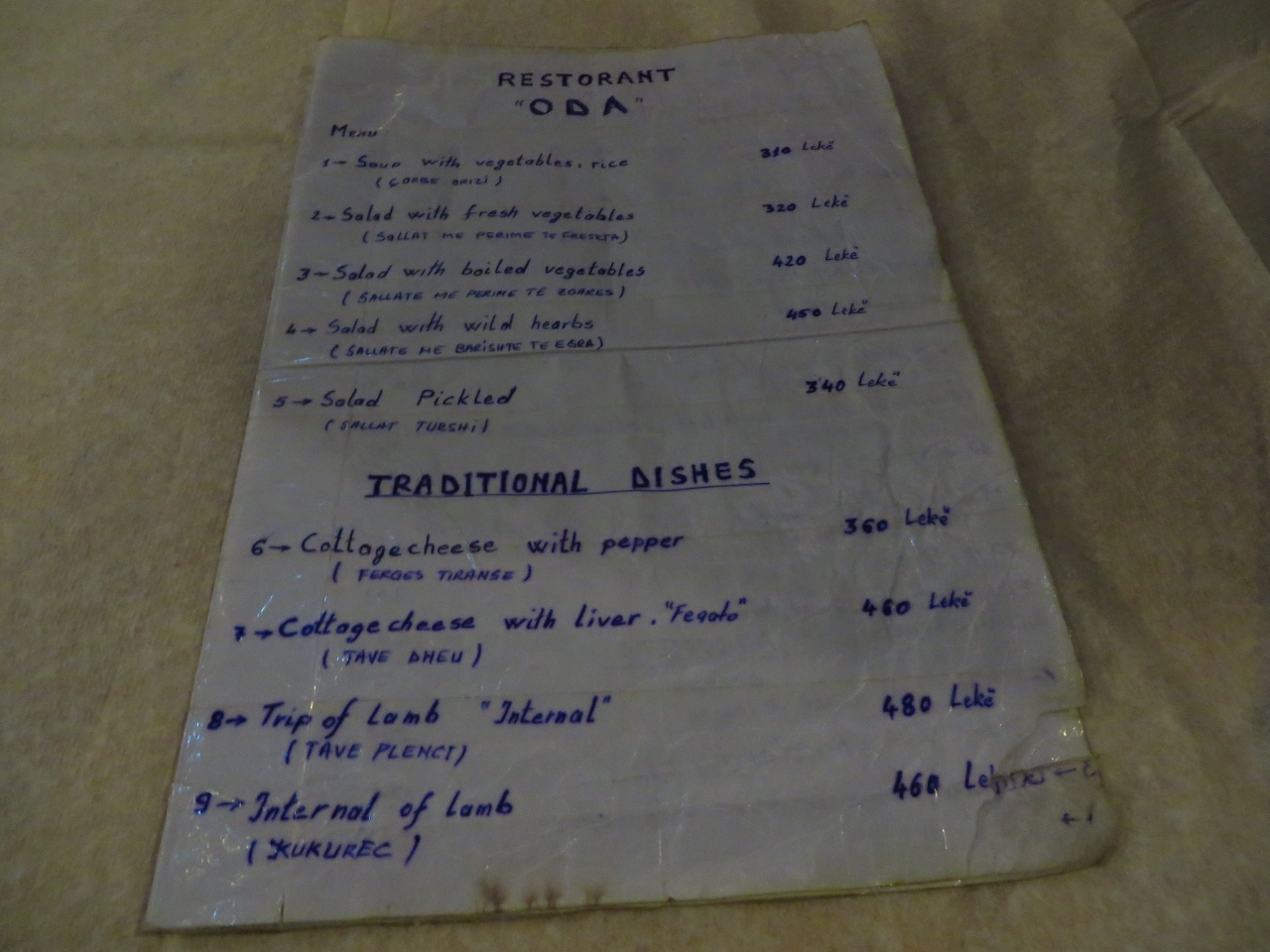 TiranaではSarajetと並ぶガイドブック掲載のお店。こちらは、それほど高級感はありません。ただ、アルバニア度で言えば、こちらかも。中の雰囲気も伝統的なアルバニアの雰囲気です。