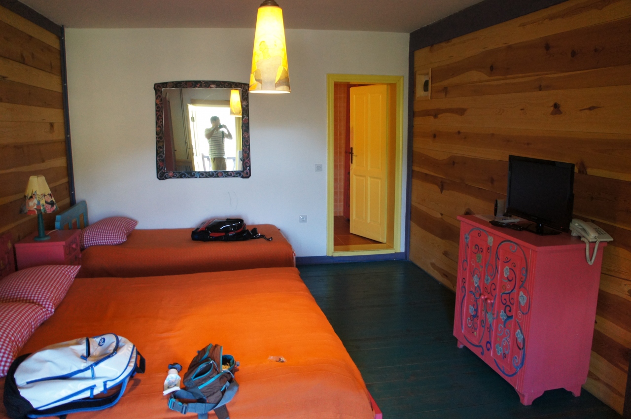 泊まった部屋は4人定員で、シングルベッド2台の部屋とダブルベッド1台の部屋の2ベッドルームがあり、2人で広く使わせてもらいました。正直4人だとキツキツかもしれません。朝10時ころに着きましたが、部屋の清掃が終わるのを待って、部屋に入れてくれました。他の部屋は違う階にあるのか、別棟にあるのか、不明です。