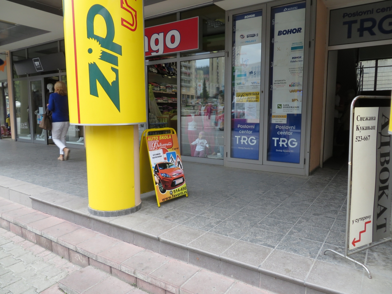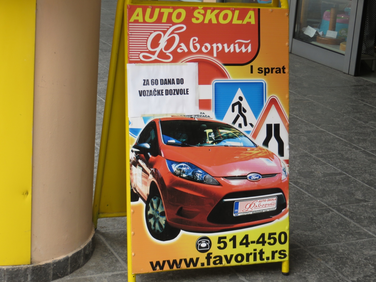 このあたりは、Zlatibor, Mokra Gora, Visegradといった観光地がありますが、公共交通機関が不便で、情報もあまりありません。レンタカーでの周遊が時間的にも効率的ですが、Uziceは大手レンタカー予約サイトでは営業所がヒットしません。そこで、ようやく見つけたのがこの業者さんです。教習所も経営しています。場所はHotel Zlatiborに隣接したdmの隣のビルの2階です。小さな立て看板が立っています。