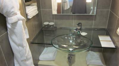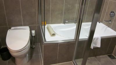 お風呂もバスタブもあり、ゆっくりできます。ただ、シャワーブースと洗面所の間にガラスの扉があるのですが、ガラスの扉には隙間がかなりあります。気にせずシャワーを使うとシャワー水が洗面所まで飛んでしまいます。(シャワーの水の向きを少し気をつけると大丈夫です)