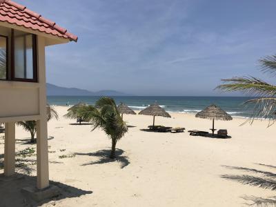 まさにオンザビーチのホテルでした。バンガローオーシャンビューにしましたが、バンガローガーデンビューだと、せっかくビーチフロントのホテルに泊まっているのに、もったいないので、予算があれば、バンガローオーシャンビューまたは、プライベートビラオーシャンビュー。ホテルタイプがよければ、スーペリアオーシャンビューがおすすめです。無料のホイアン送迎があったり、写真は撮り忘れましたが、ホテル内のマーッサージも、ホテル内なので、綺麗で豪華です。料金はベトナム価格でした。目の前のビーチは、遊泳禁止っぽかったので、次回はマリンアクティビティのオプションを利用したいです。