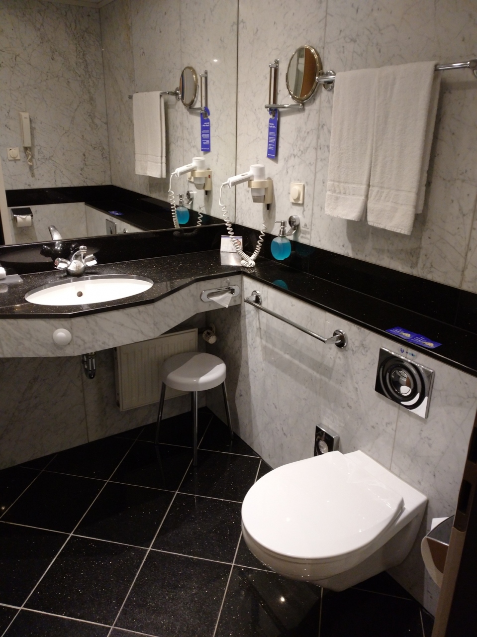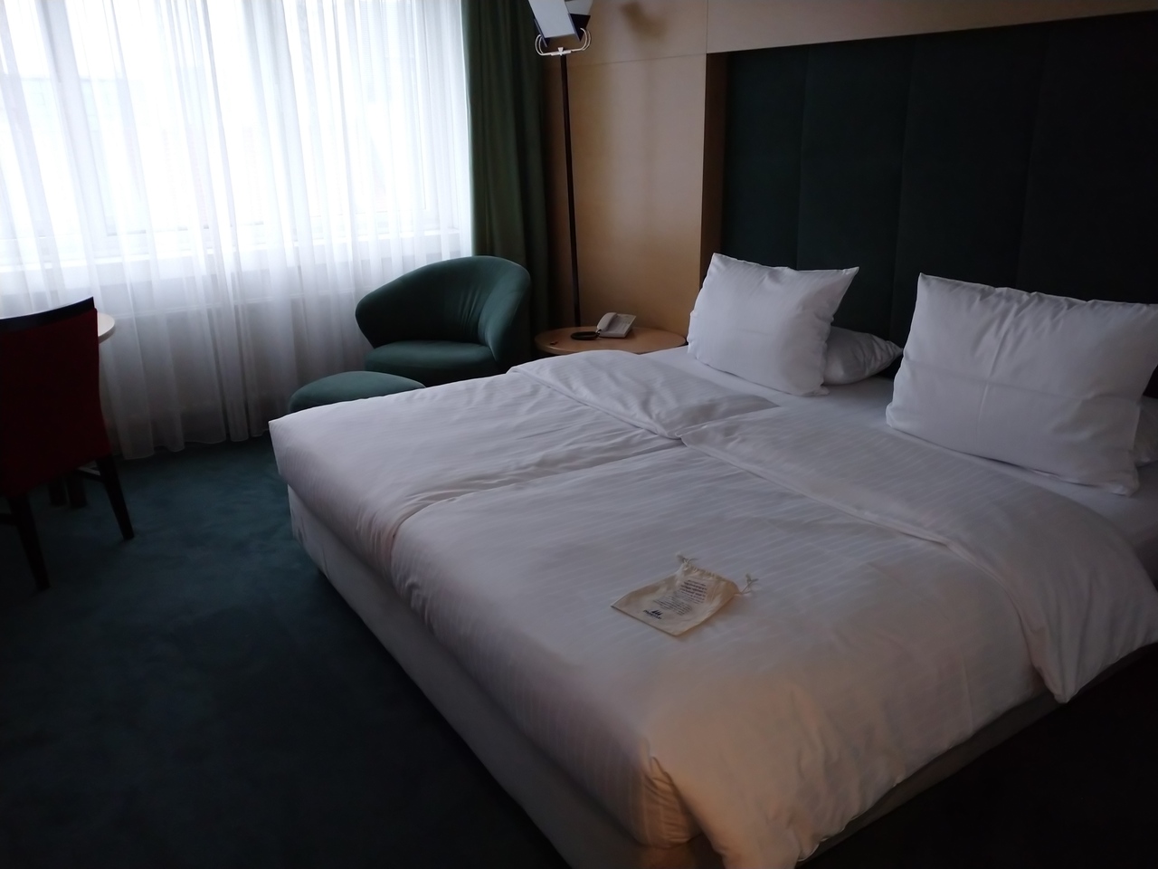 お部屋は清潔でゆったりとして、ヨーロッパのホテルにしては珍しくスリッパがあったのが地味に嬉しかったです。浴室も問題ありませんでした。
