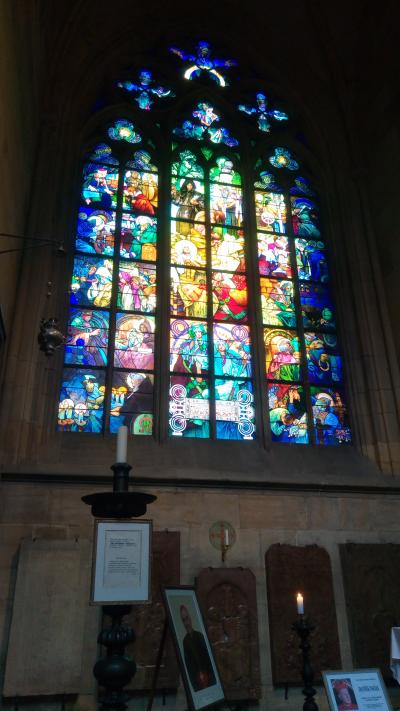 聖堂内の素晴らしさは語るまでもありませんが、あんなに可愛らしいムハのデザインが、ゴシック様式の聖堂に美しくマッチしているのが不思議で、改めてすごいものだと感動しました。