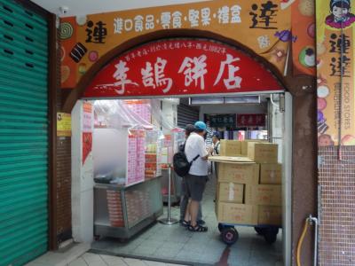 東の方は基隆廟口夜市になっていて賑わってますが、西側も東南アジア特有のアーケード街になっていて市場のようににぎわってます。有名なところでは基隆で一二を争うパイナップルケーキ屋さんの李鵠餅店もこの通りの西側部分です。