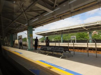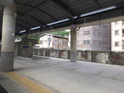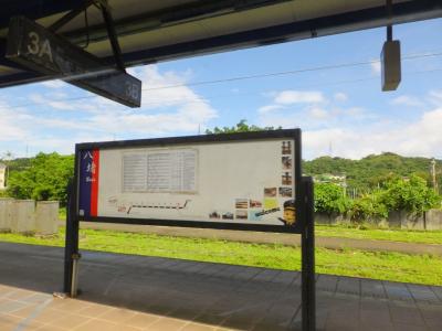 基隆川に沿って走る台鉄の中でも川に一番近い駅かもしれません。北は道路の向こうに基隆川、南は山。街は川の向こうに。ビルがかなり見えました。川をわたる橋は赤白のしまもようの塔のある近代的な吊り橋。ちょっとおめでたい感じがします。駅舎は橋上式。階段も狭くラッシュに対応できるのかちょっと心配です。その狭い空間を鉄道が走っているのでホームは狭いです。3線区間なのでホームは島式1本と相対式1本。基本、南側の島式ホームの利用のようです。駅舎の下にエレベータが見えました。