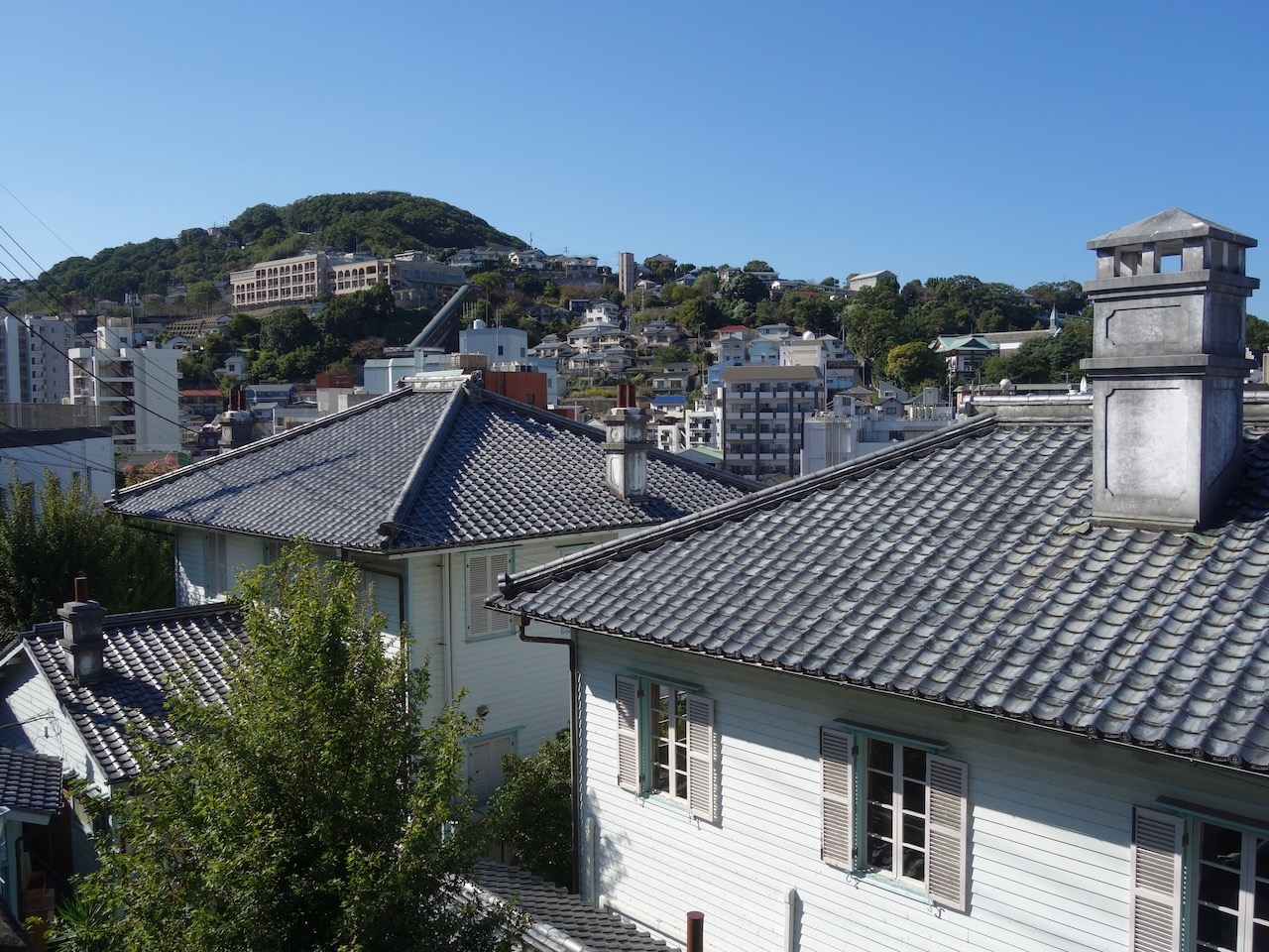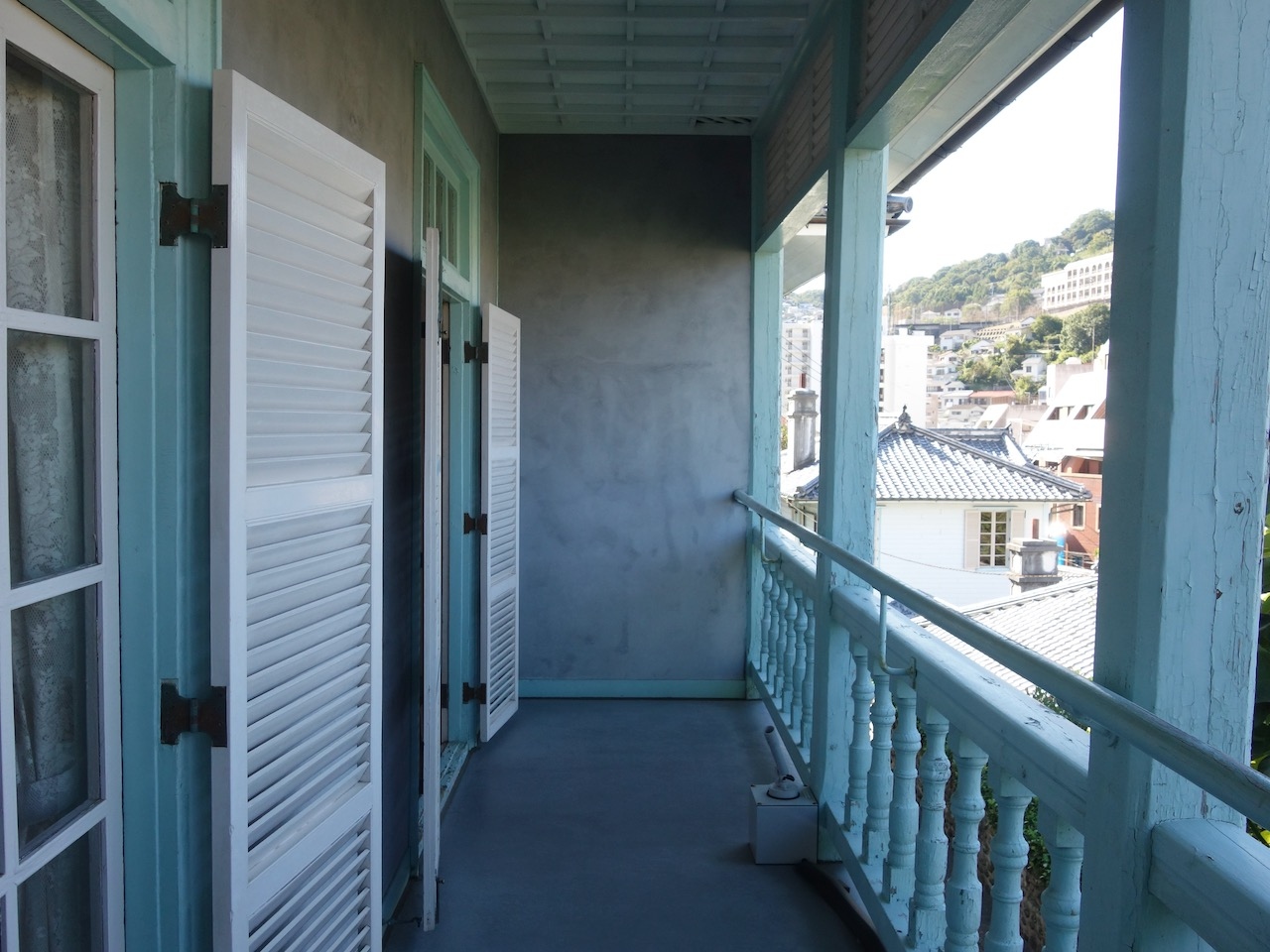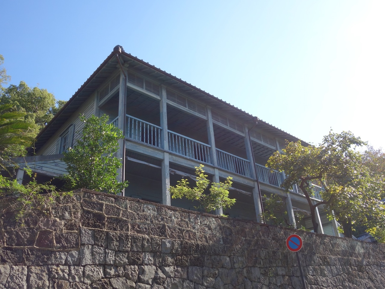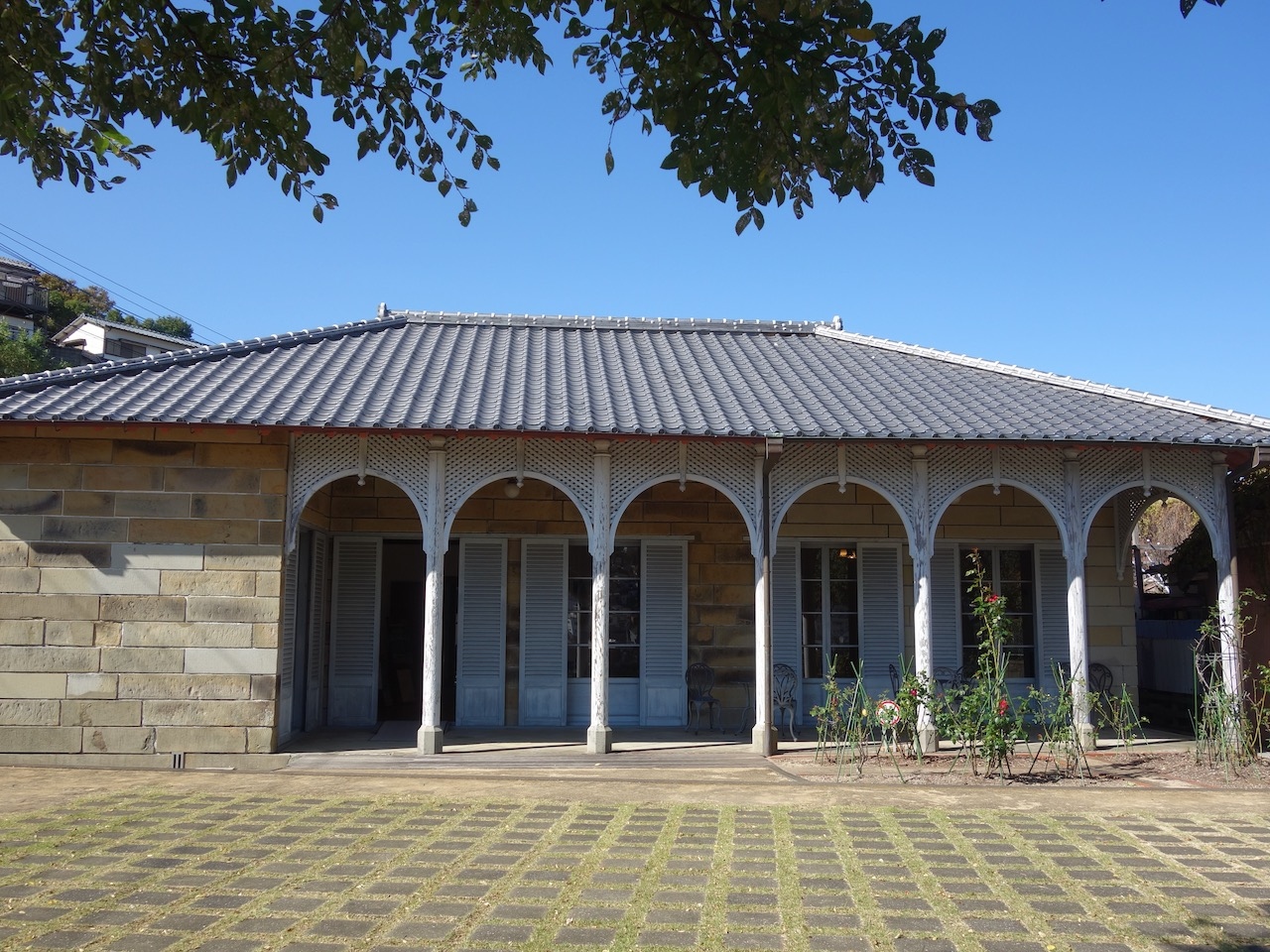 オランダ坂通りのグラバー園側のオランダ坂の中ほどにある東山手洋風住宅群の、上下2段になっている洋館群の下段側の4棟を使用した資料館です。