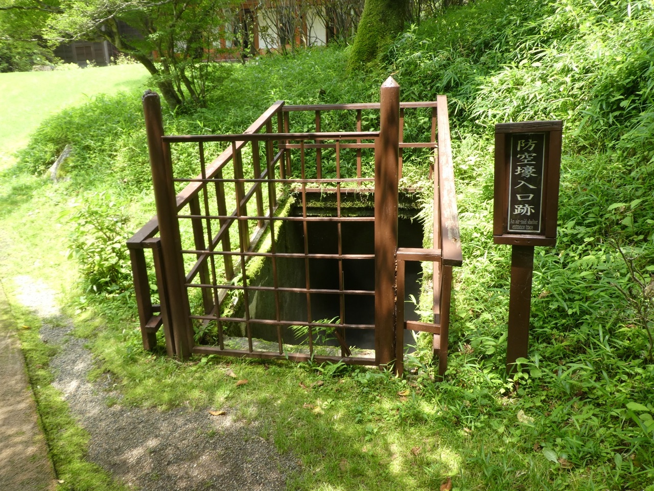 庭には防空壕が。これも必見。ここまで空襲があるとは思えませんが念のためでしょう。