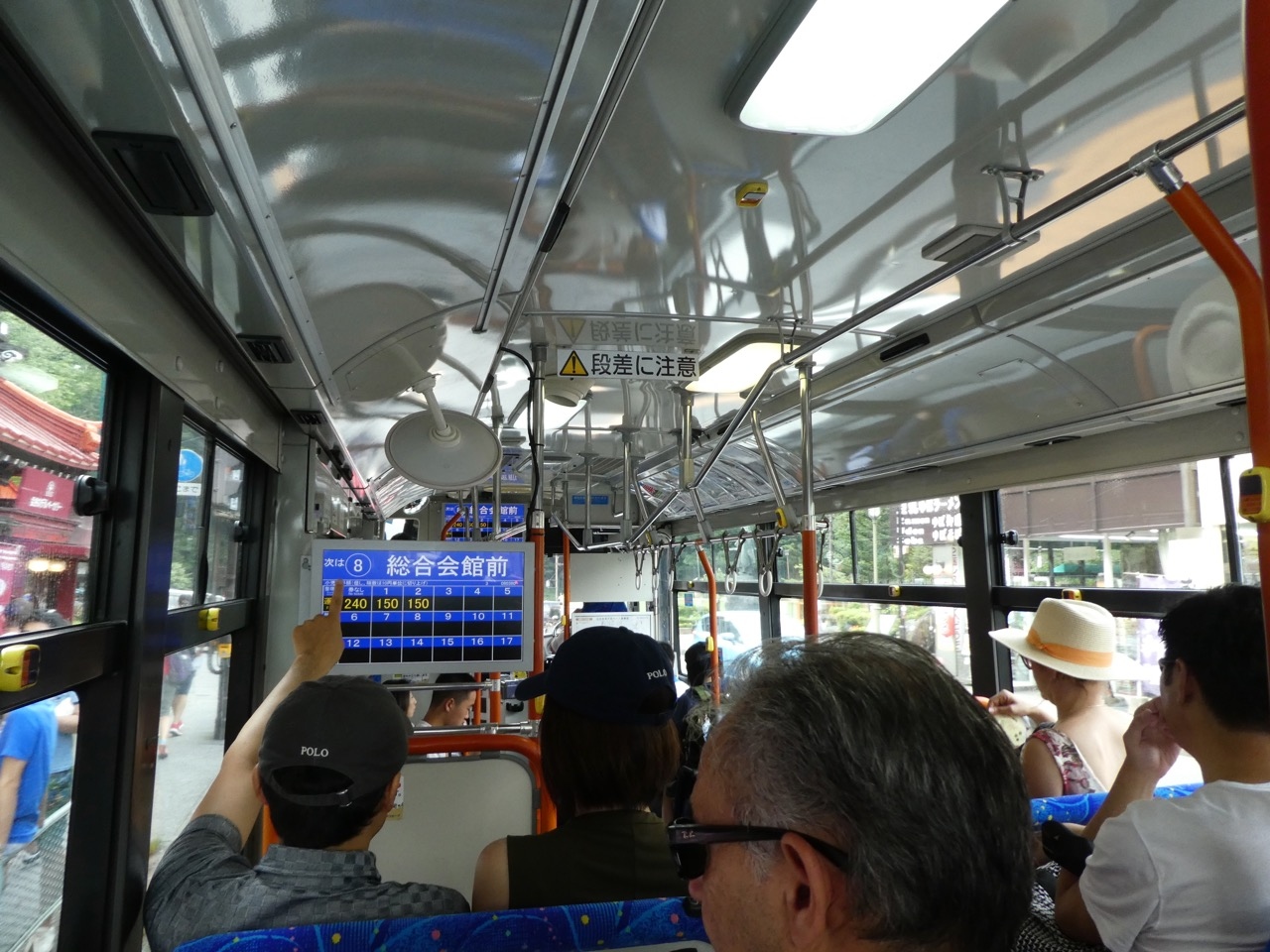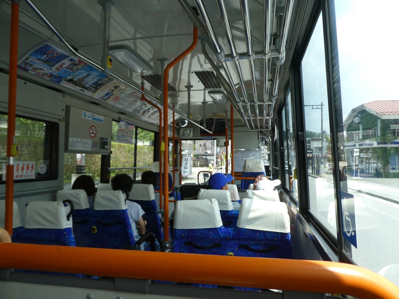中型のバスで、車内は普通のバスでした。座席数はあまり多くありません。まあ、座れなくても2kmも離れてない日光の社寺。渋滞しない限りはとくに問題ないでしょう。