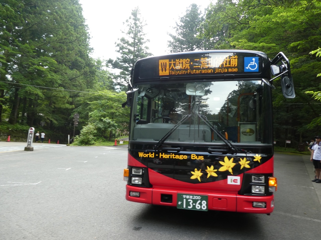 バスの案内所で、週末はコースが変わることを教えてもらいました。渋滞を避けるためと思います。経由地かなり省略されて二荒山神社直行でした。また西参道行きが別立てで運行されるようです。