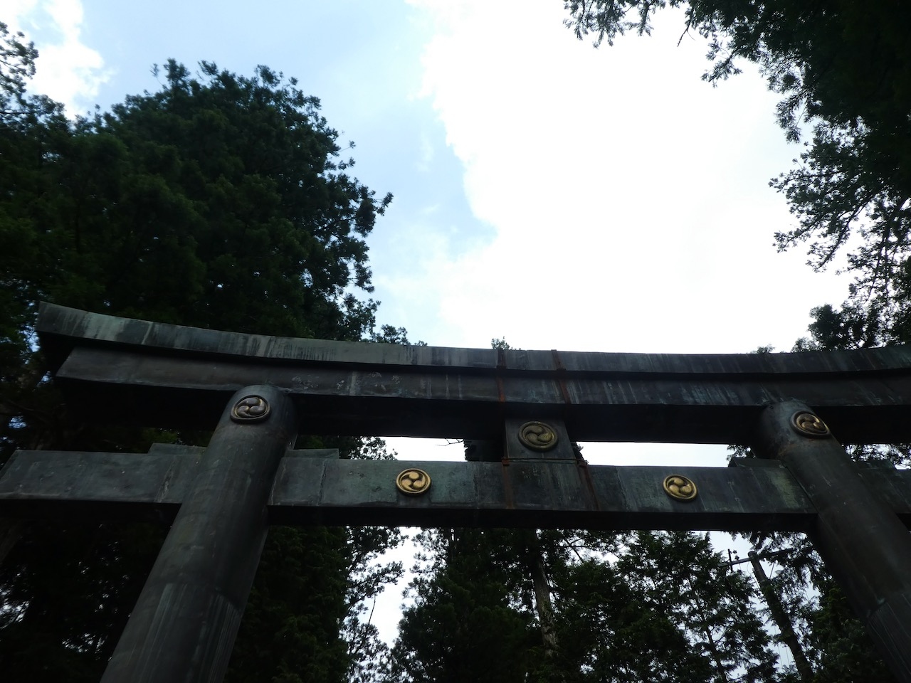 南側の鳥居がシンプルなのに対し、この唐銅鳥居は青銅色できれい。大きさはちょっと小さいかもですが、こちらの方が立派に見えます。三つ巴の紋がべたべた貼ってあるのはちょっと興醒めの感もあるのですが。- 旅行時期