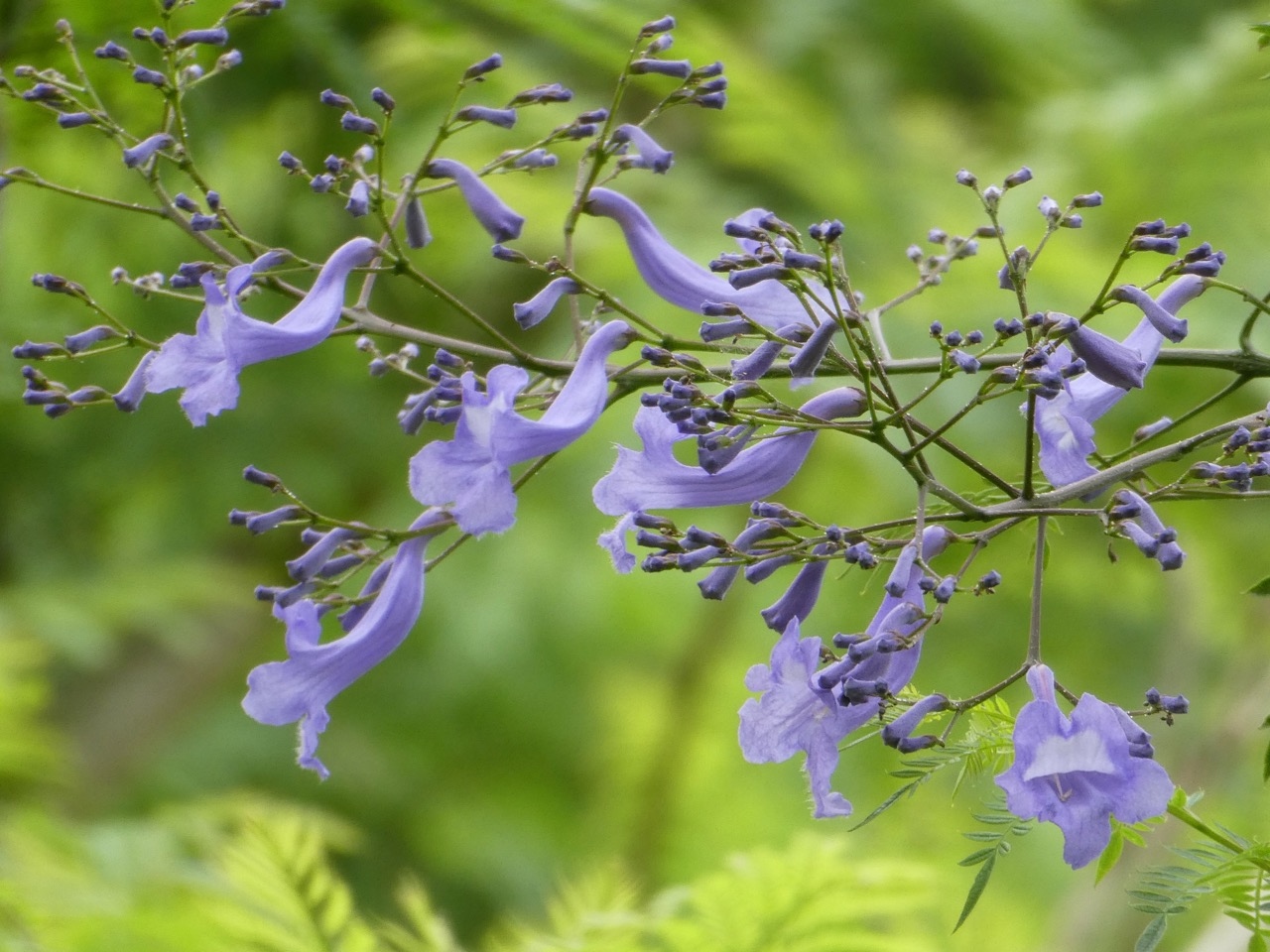 ジャカランダ、きれいです。世界三大花木の一種。5月下旬からのジャカランダ祭りではきれいな花の森が見られます。ただ、冬が暖かいことが前提で、寒かった年は花つきが悪いです。