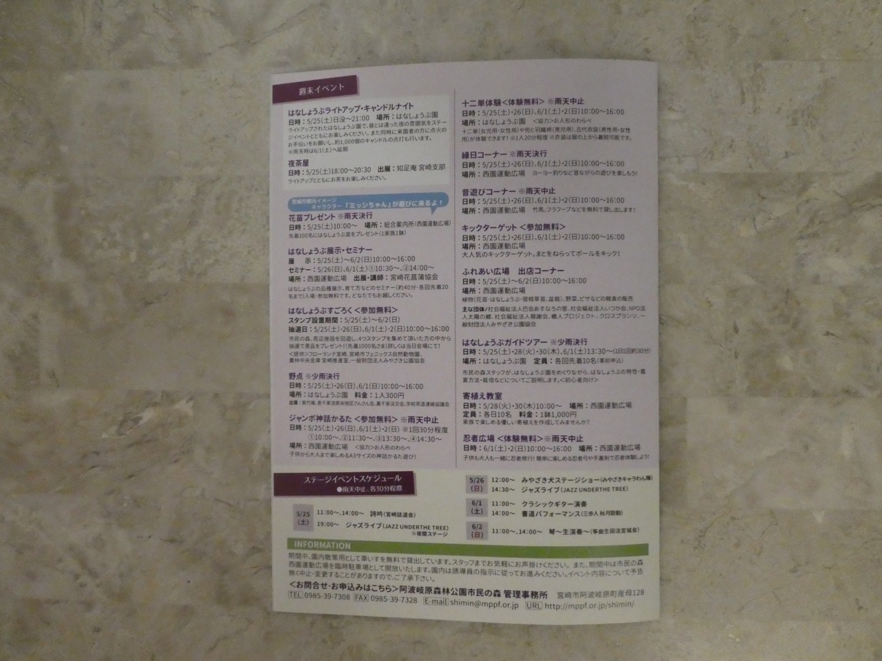南側は「フローランテ宮崎」という花のテーマパーク(ここだけ有料)が中心で南北が林の中の散歩道といった公園です。事務所があって、レンタサイクルもやっています。