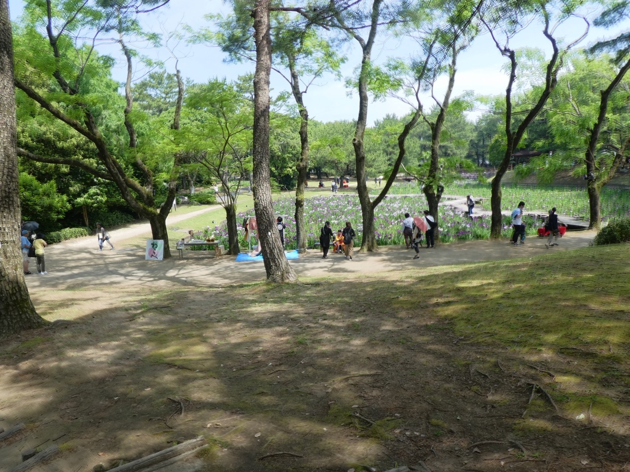 公園の北端がメインで「市民の森」といって、神話の「みそぎ池」が一番の観光名所。池がハスに覆われ、林の中にぽっかりある感じが神秘的。あと、5月には花しょうぶ祭りがあり、にぎわいます。