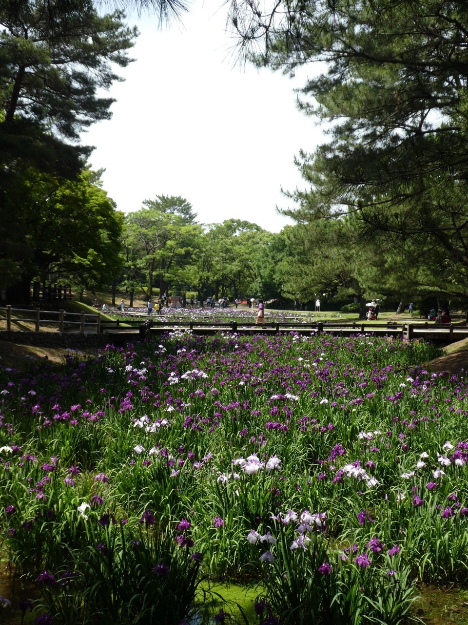 池一面の花しょうぶ。池には橋も通路もあって花をすぐ近くで眺められます。
