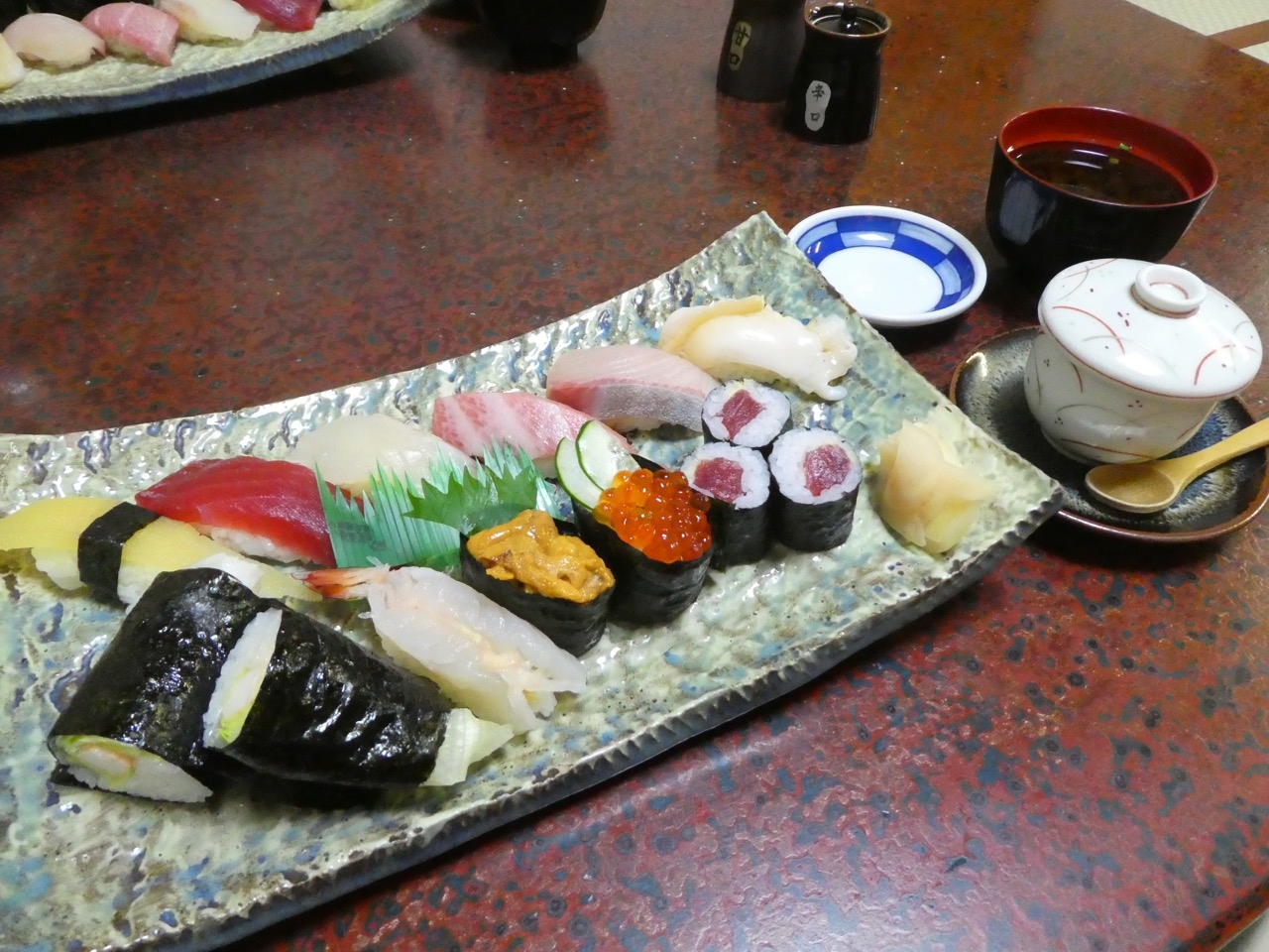 レタス巻きと鉄火巻きが目立ってますが、茶碗蒸しとお味噌汁がついてました。