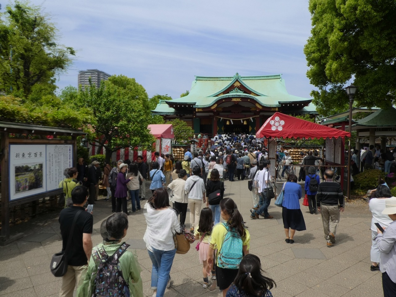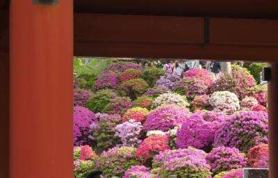 つつじまつりの時期に訪問。ふだんより相当多いのでしょうし、たしかに神社の中に列はできていましたが初詣ほどではないです。20分くらいで参拝終了。