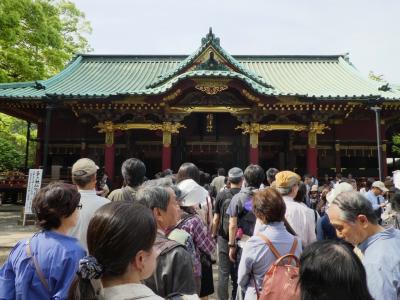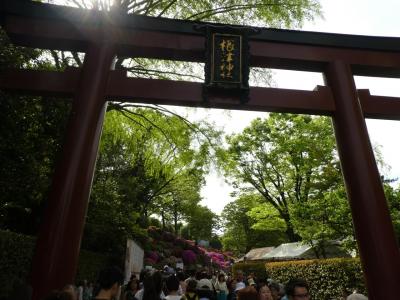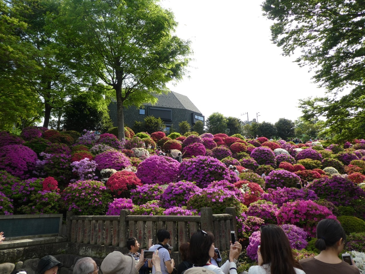 根津のあたりは東京でも起伏のあるところ。根津神社の中の片側が丘の斜面になっていてそこが一面のつつじで真っ赤になります。神社に入って列が左右にあり、左がそのつつじの丘に入る列、右が参拝の列。当然左の方が長くすすみかたもゆっくり。でも見るだけなら、参拝だけでもいいかもしれません。つつじの丘に入るか入らないかだけの差で一面のツツジ、は参拝だけでも見れますから。