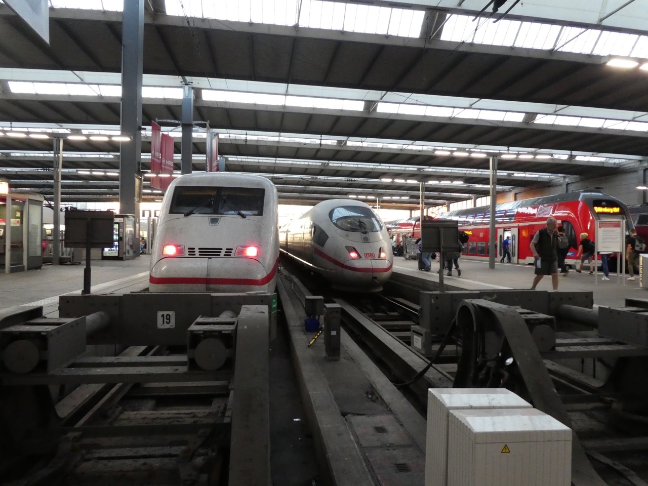 ミュンヘンはドイツ南部の交通の要衝なので多系統のICEがやってきます。形式もいろいろあるのですが全部一緒に見えることでしょう。ただ、やはり中身は新しい形式ほど簡素になっている気がします。