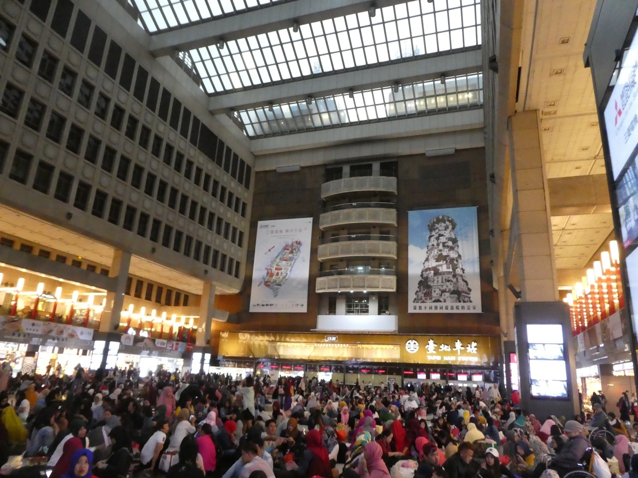 日曜日、1階の巨大な吹き抜けのホールはまるでピクニックのように座り込んだいっぱいの人人人。どうやら休日を仲間との交流に当てる外国の労働者のようです。その間をぬけての移動はちょっとたいへん。でも興味深い風景でした。
