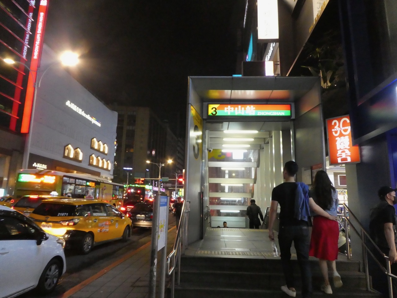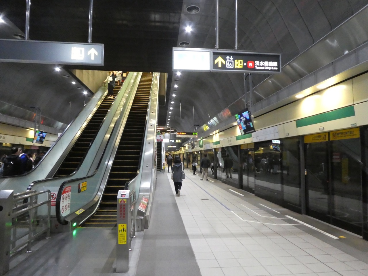 中山地下街の中心にあり、MRTの相互乗換駅でもあり、人が多いです。そのわりに地上に出る階段は細かったりして、初期のころのMRTなのだなあ、と思います。混雑があまり考えられていなかったのでしょう。夜20時すぎで空いていたからいいですが平日のラッシュのときはどうなのでしょうか。