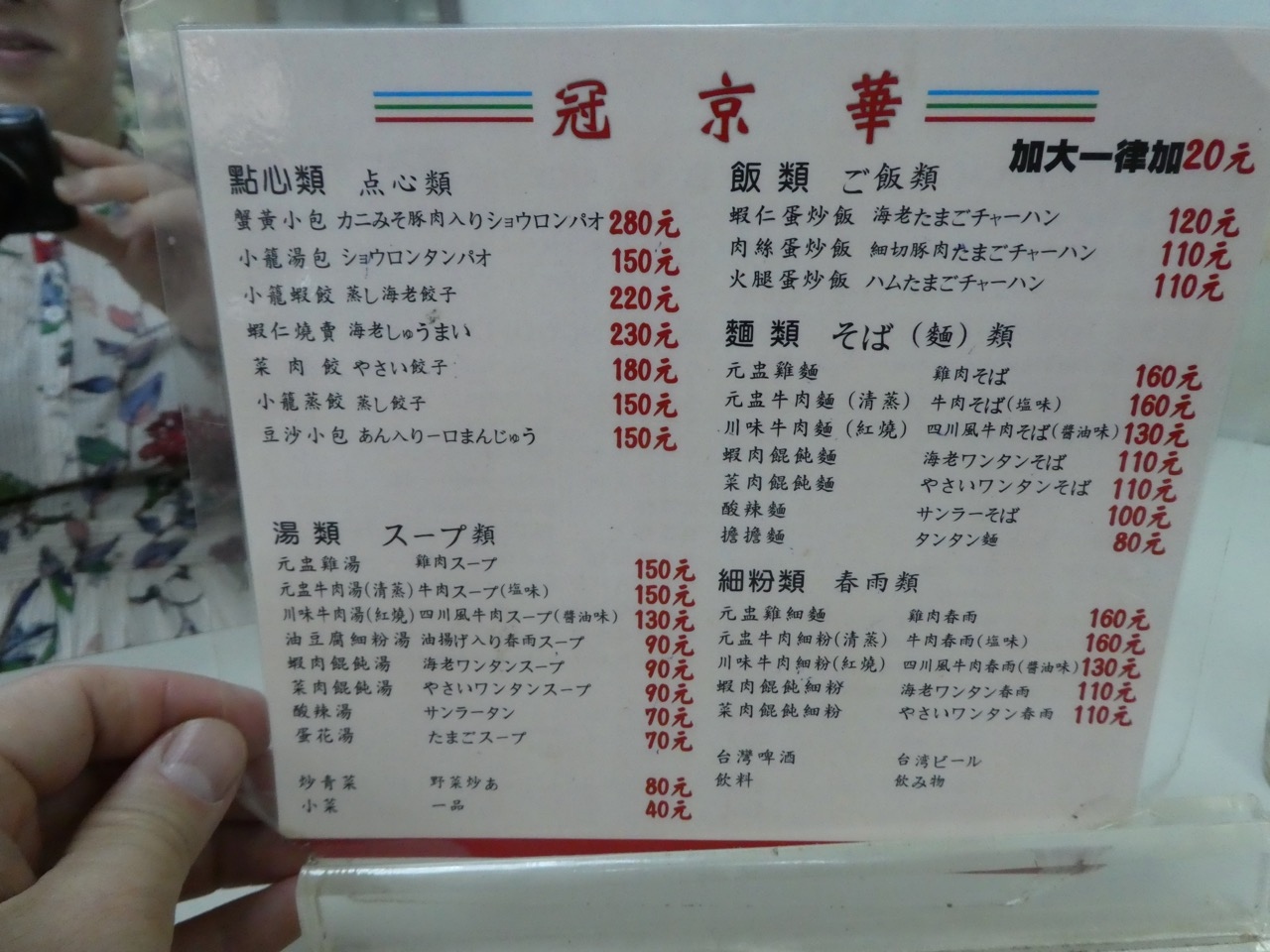 日本語メニューがありました。小籠包は大きいのが12個入って150元(500円くらい)。安い。で、野菜もチャーハンもスープも頼んでしまって冒頭の失敗に至るわけです。