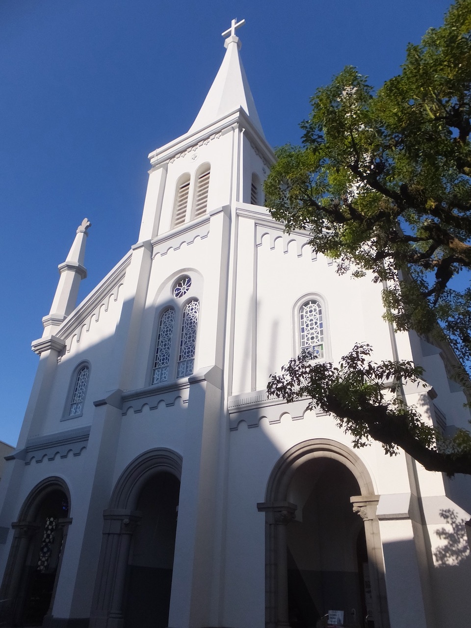 建築時にはあのスペインの教会は日本でほとんど知られていなかったはずで、その紹介の意味もあるのでしょう。朝は白さが輝いてきれいでした。- 旅行時期