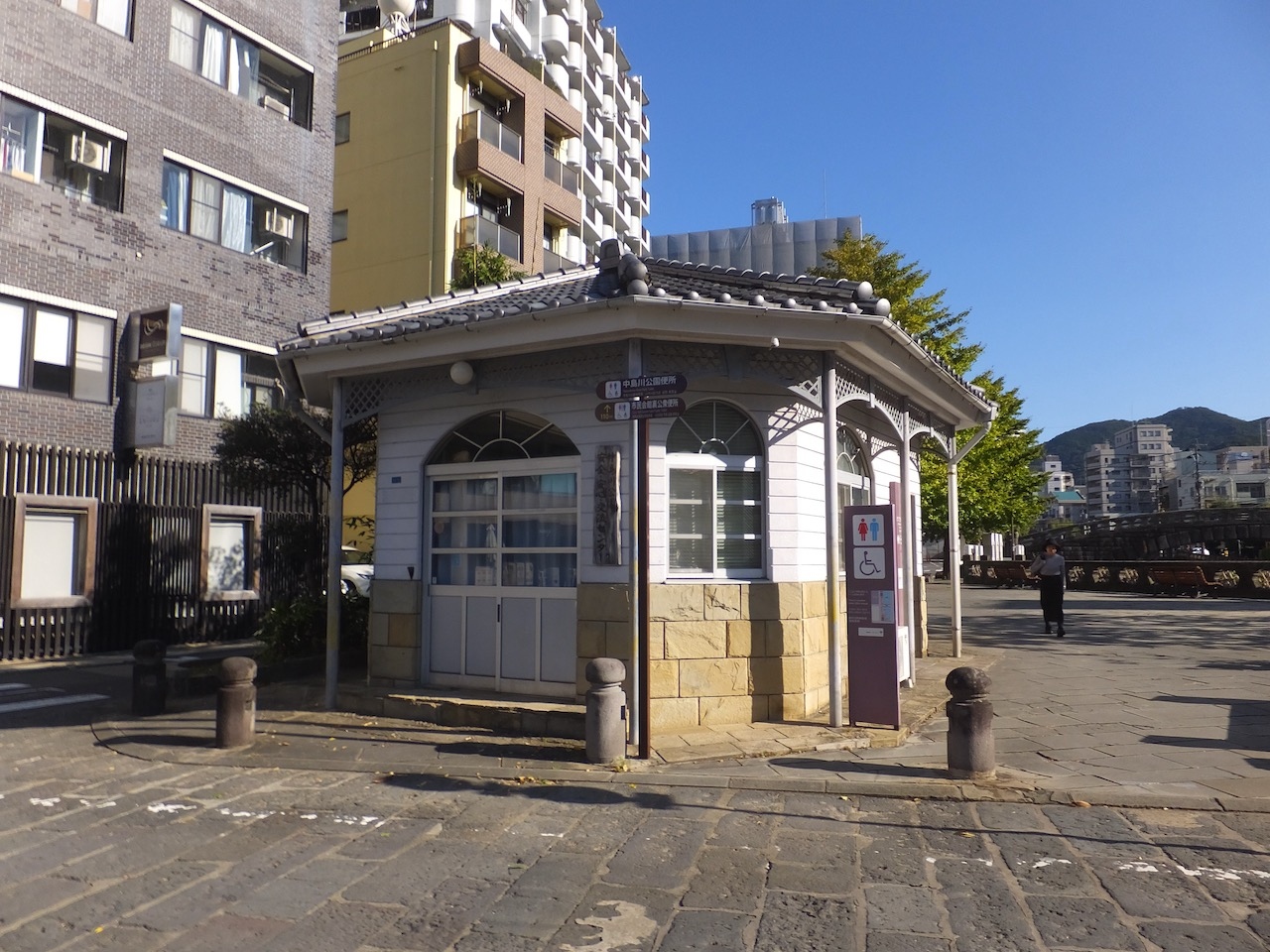 そのときに表面はきれいにタイル貼りにして欄干もおしゃれなものに変え、側面もパネルで覆ったので昔の構造部分を見るには橋の下が見えるホテルの前の階段を降りたとこまで行かねばなりません。