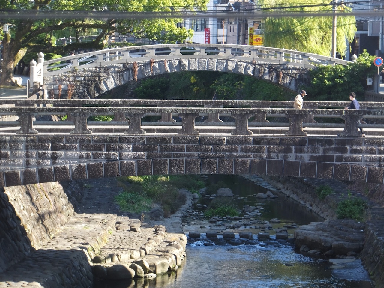 長崎の橋では眼鏡橋が有名ですが、石橋はなにもこの眼鏡橋だけではなく、その上流や下流にいくつも石橋があります。