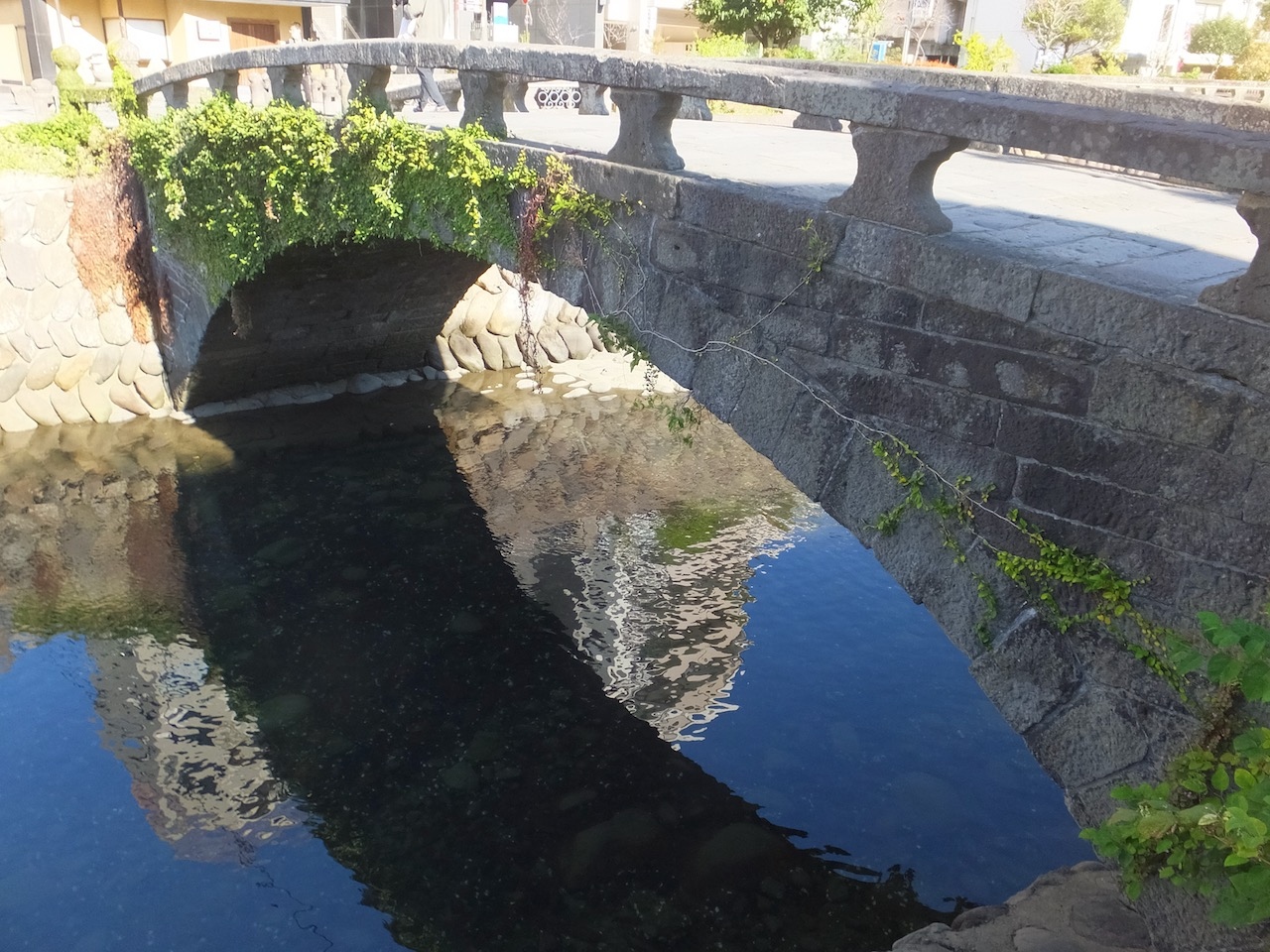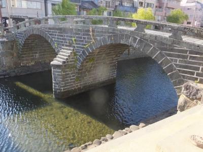 さてどこまで散歩するか、ですが、眼鏡橋から上流に向かい、川の分岐のある手前の大井手橋で折り返し、眼鏡橋を通り越して常盤橋まで、さらには一番の繁華街の中央橋まで散歩するのがあとの交通のことも考えるといいかと思います。