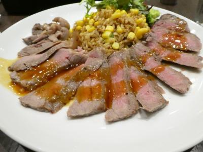 「サーロインステーキ&メキシカンピラフ」約1700円が半額。そりゃ行くでしょう。