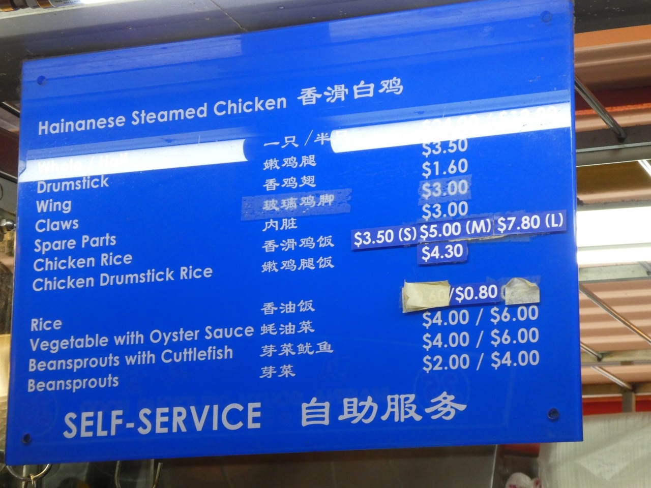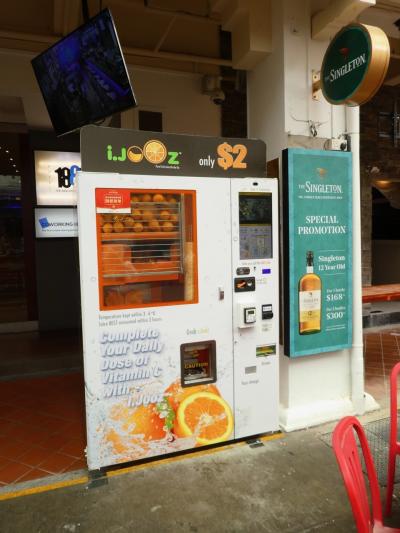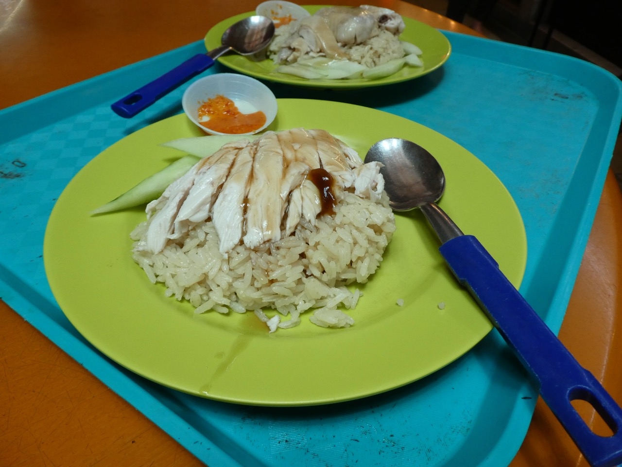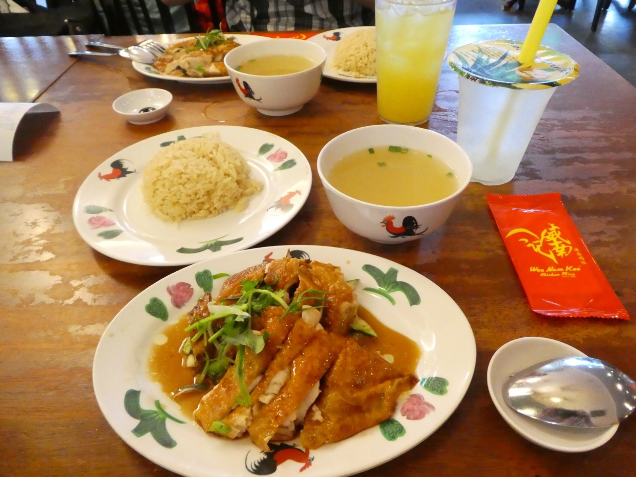 さて、東京田町にもお店が出ていて、さらに拡大しつつあるチキンライスの名店。そのシンガポールのお店は、というと、高級店ではなく普通の庶民的なお店。量も多くて安いです。東京では1100円するのに半分以下くらいだった気がします。注文すると「飲み物や野菜もいかが」と店員さん。商売もうまいです。