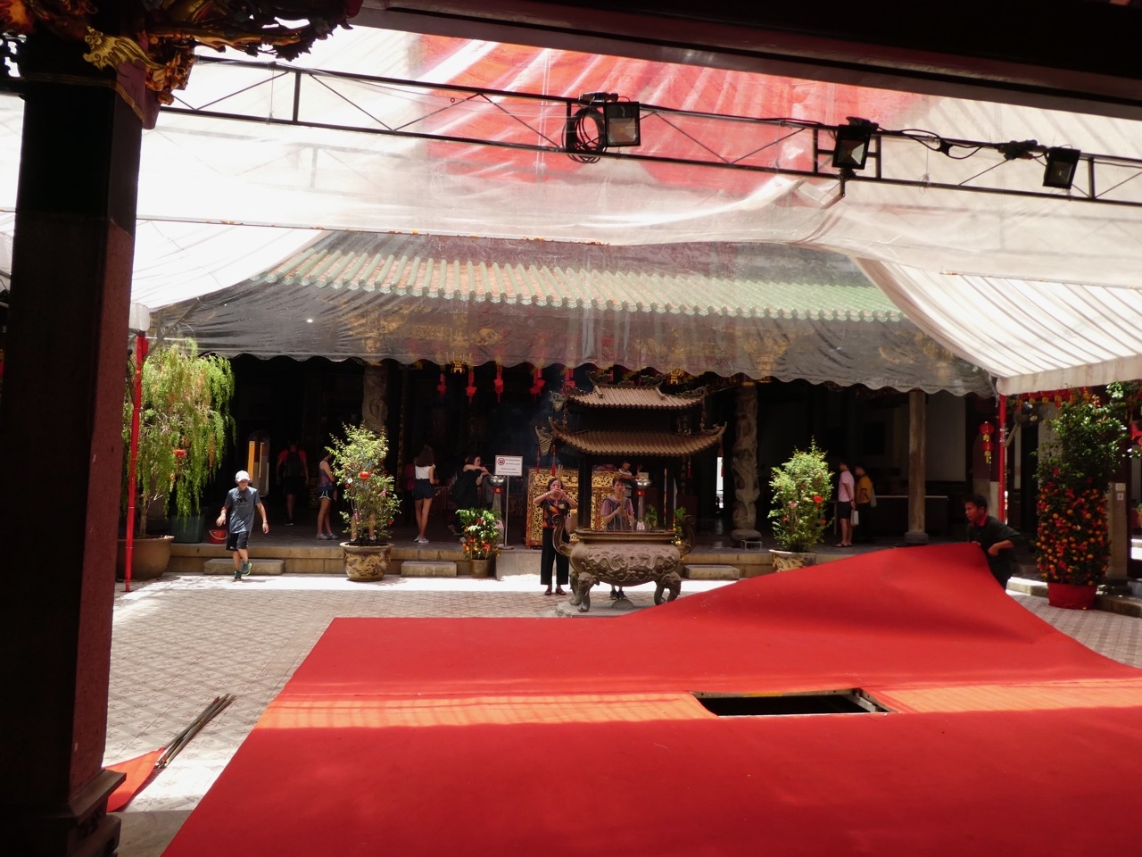 チャイナタウンから歩きましたが、ダウンタウン線のテロック・アヤ駅からだと近いです。正面には門がずらりと並んでいて、正門よりも横の門と通路の方が立派で間違って入ってしまいました。まず、ちょっと通りの反対側から全体像を見てからの方が屋根の上の龍の飾りもわかっていいと思います。中庭はきれいな石畳。観光客も少なく、現地のお祈りの人がわずかにいるだけ。静かな雰囲気でした。