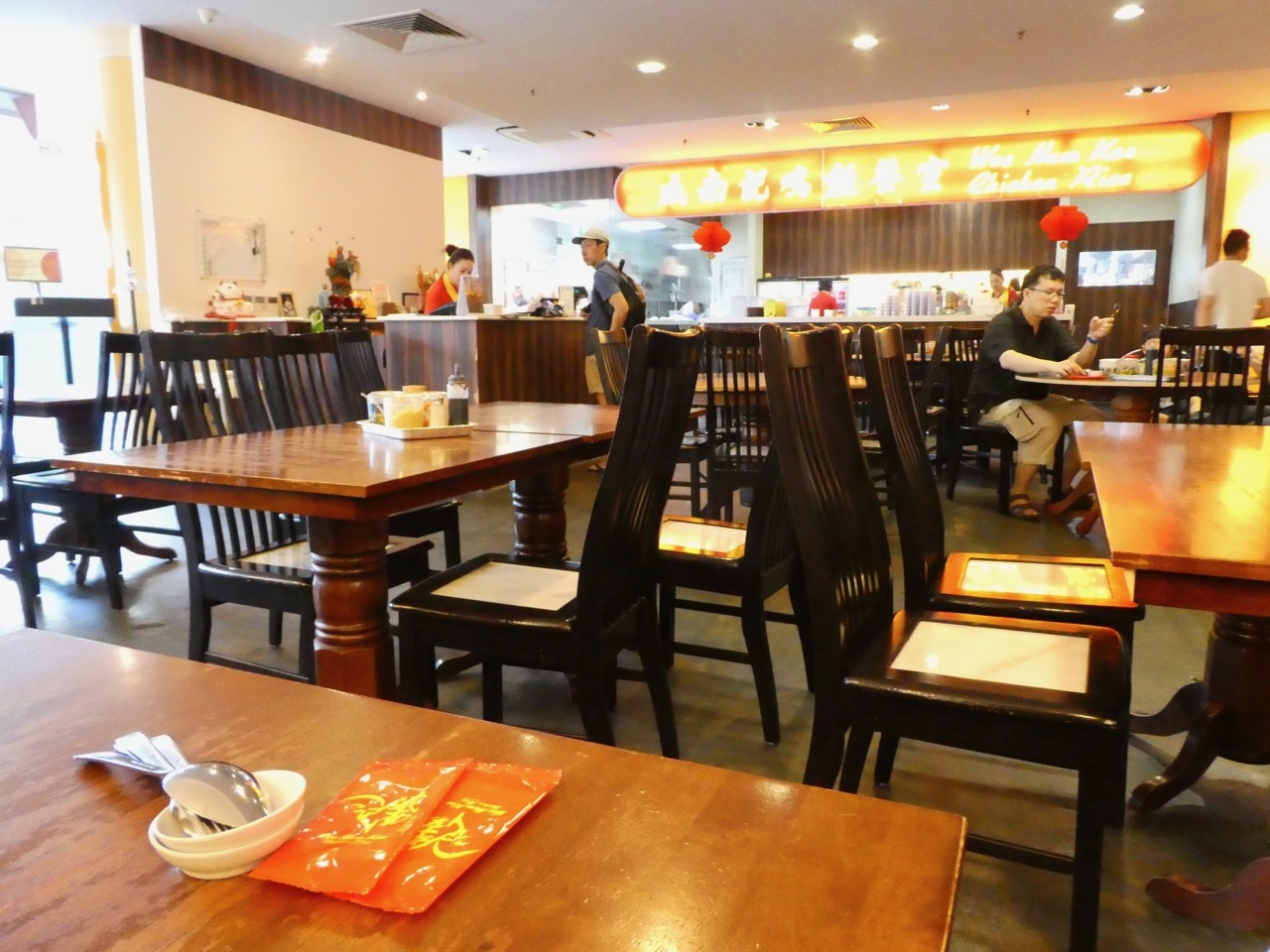 チャイナタウンの仏教寺院のはす向かいくらいに入口があります。平屋でちょっと目立たないので気がつかなかったという。でも中は広いです。お店の数の割に屋内の座席数は少ないように思います。その場合は屋外へ。壁に沿って一人席も含め、少し席があります。- 旅行時期