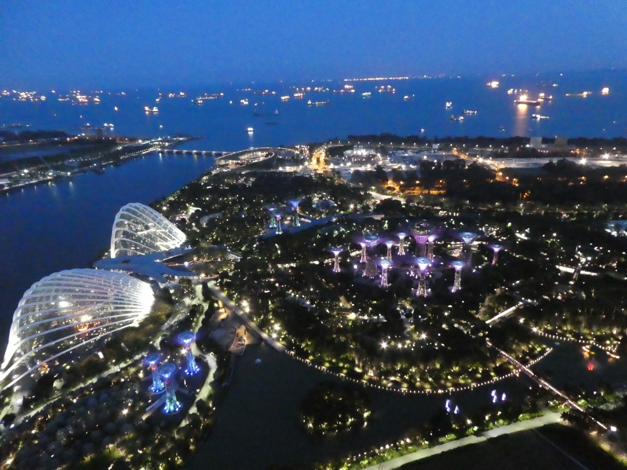 ガーデンバイザベイの光のショーとマリーナ湾の光のショーを見ましたが、空の上まで音がまったく聞こえず。迫力なし。おすすめできません。その方向の席取りのために15分くらい前から人垣ができてました。