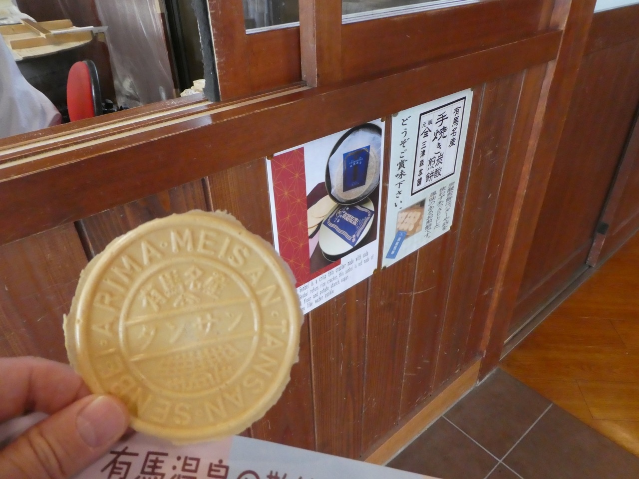 有馬温泉名物炭酸せんべい。基本、味はほぼ同一なわけですがせんべい自体に風味付けしてあるものもあります。こちらではそれをメインにしているような印象で、いくつかの味をセットにした商品までありました。梅やシソや生姜のような和風のものが美味しそう。というわけで生姜のフレーク(割れたものや型からはみ出した部分)を購入。コーンフレークのようにばりばり食べられて安価。お土産にするには嵩張るのが難点ですが、割れても構わないのは持ち運びに楽でいいです。