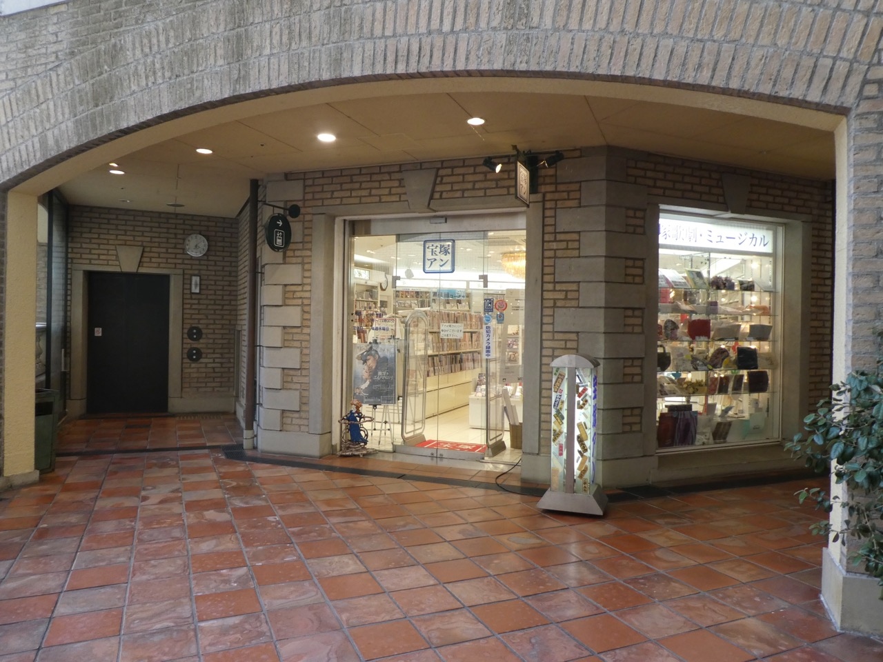 阪急宝塚駅から宝塚歌劇までの花のみちの道沿い、高層マンションの1~3階部分がちょっと張り出し、邸宅っぽくなってそこが商店街になっています。全体として南欧風の黄土色にオレンジの屋根のおしゃれな感じ。そう新しくはなさそうですが落ち着いた感じになっています。そして花の道から高架歩道で2階部分にもアクセスできるようになっていて、よく考えられています。2階に宝塚歌劇関係のショップがありました。それだけを対象に店が成立するんですね。昔のプログラムや「宝塚グラフ」などが売られていて懐かしかったです。