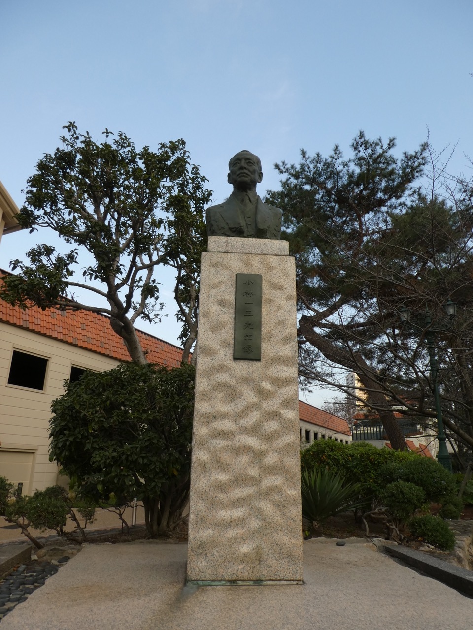 一番の目的は宝塚歌劇の創始者、小林一三の像です。入口近くにありました。本業、阪急電車の創始者としても有名です。