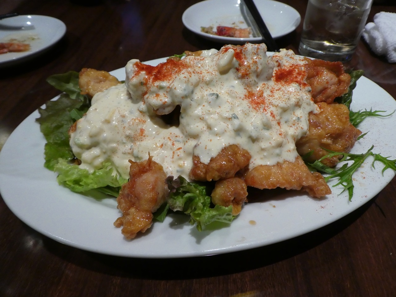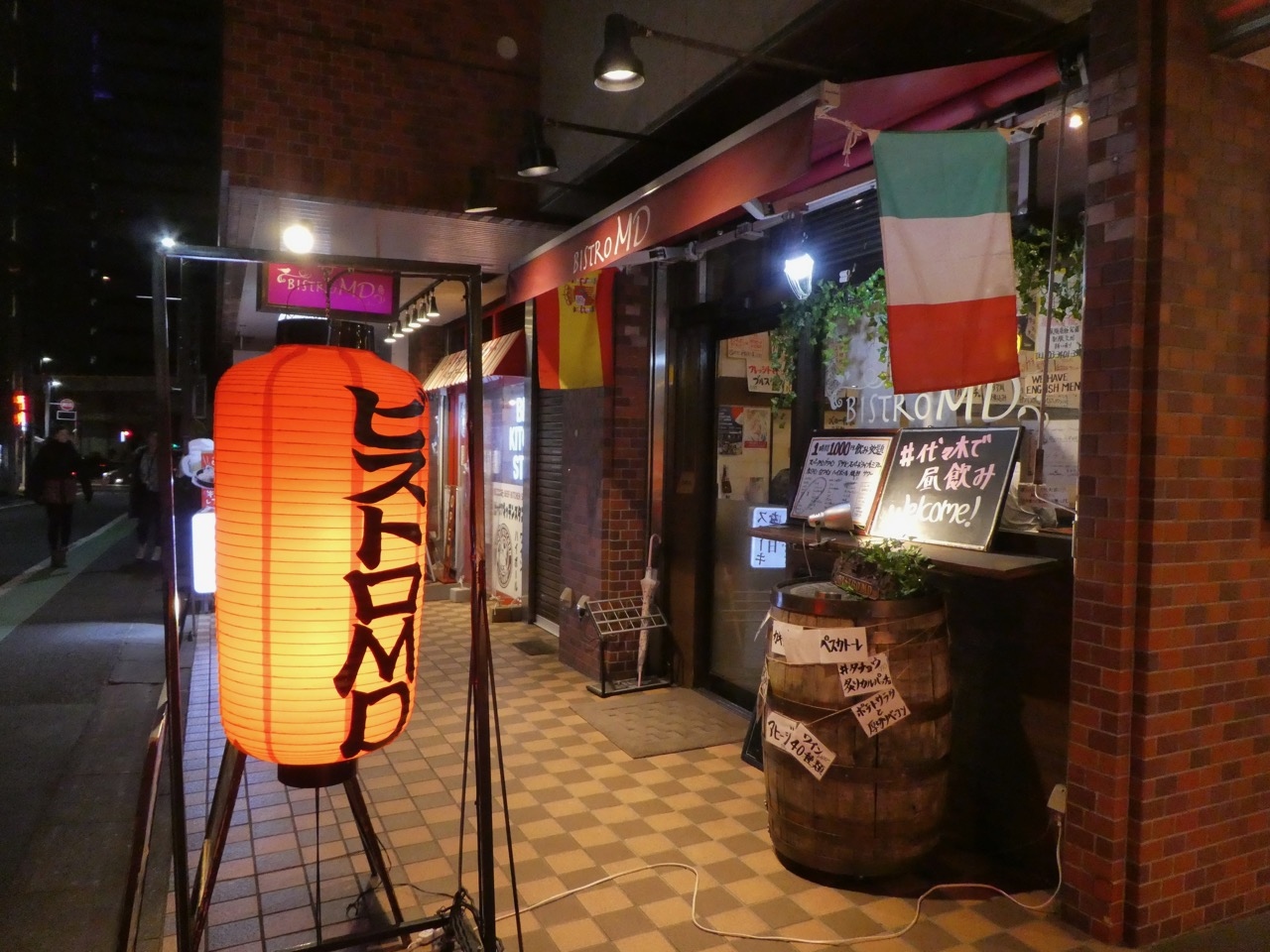 夜の会食での利用です。代々木の山手線のガードをくぐって山手貨物線の踏切をこえて明治通りまでのあいだの商店街の中に赤提灯、とイタリア国旗と、サッカーチームの旗?が架かっているという謎の雰囲気のお店。正体は南欧風の居酒屋といった感じ。夜なのでカップルと意外に女性の2人組みが多かったです。雰囲気にあった客層です。食事はちょっと見た目に趣向をこらした感じ。おしゃれです。でも一番美味しかったのはチキン南蛮でした。東京にしては珍しい美味しさです。