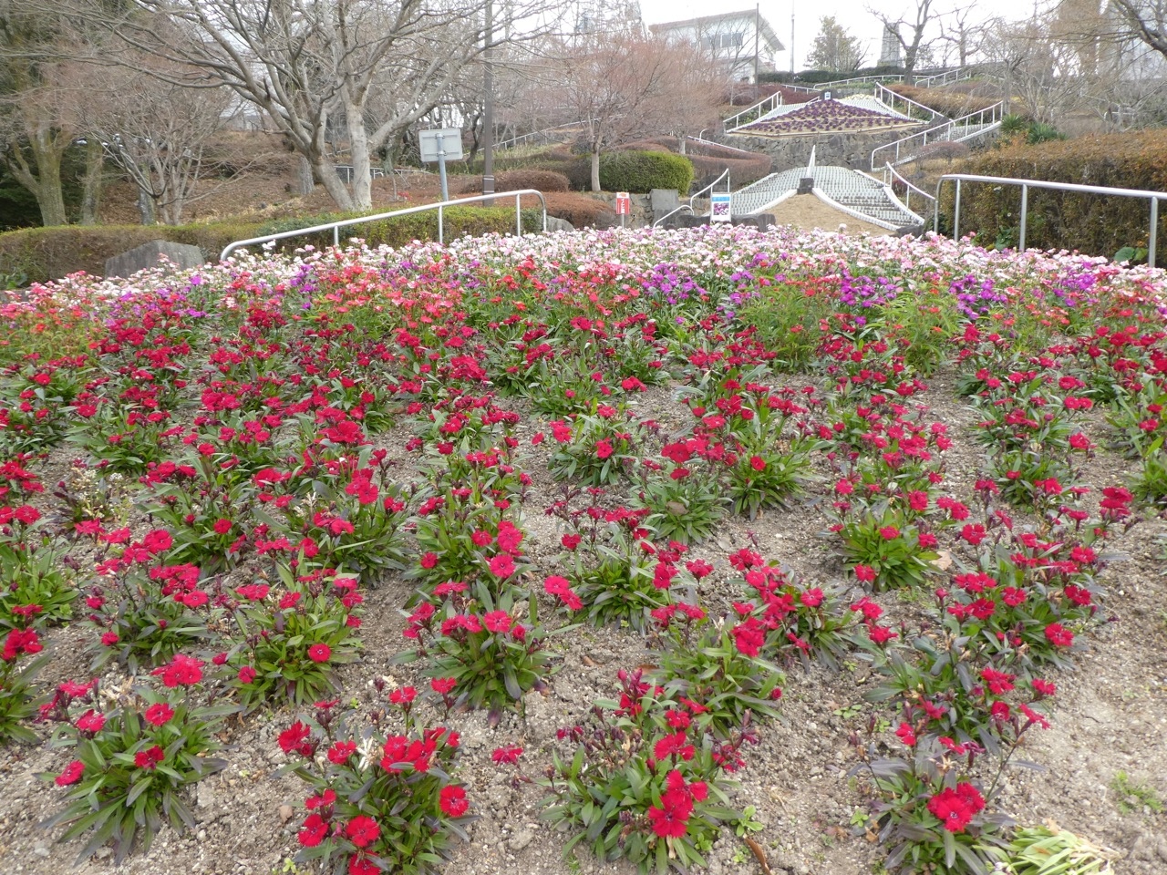 眉山山頂にあります。市街地から見上げても電波塔の群れの中に白い大きな建物が目立ってます。パゴダとはミャンマー(ビルマ)様式の仏舎利塔なわけで、太平洋戦争のビルマ戦線の犠牲者慰霊のために建てられたのだそう。