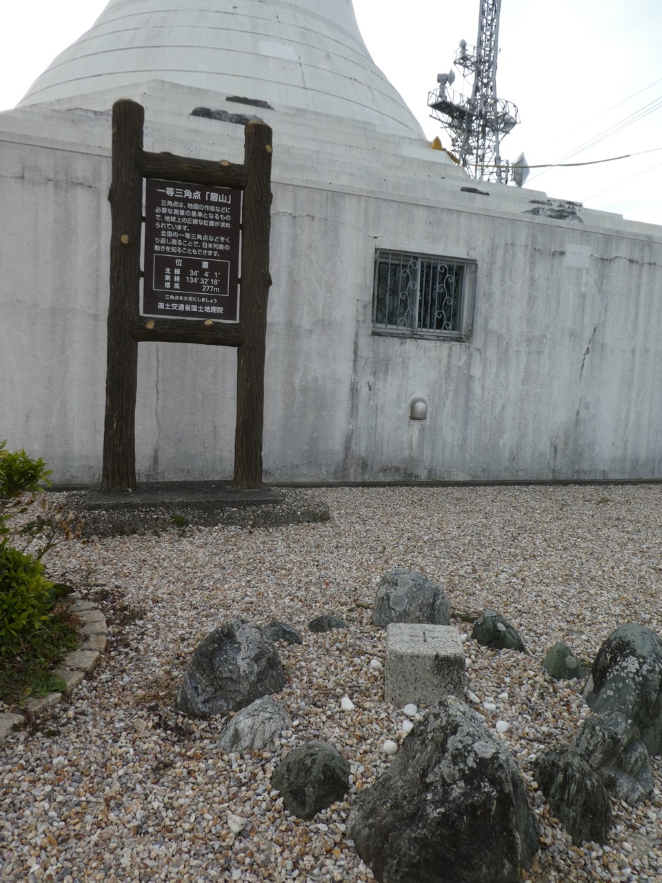 実際山頂に来てみるとあまり大きくはないです。細部の装飾はありますが、基本白一色です。日本最大級なのだそうです。なお、裏に一等三角点があります。