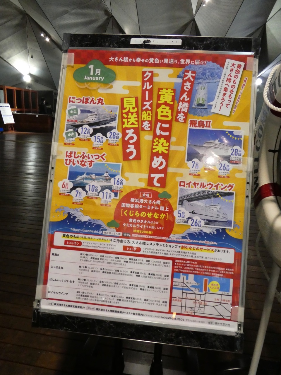 大さん橋から出航するクルーズ船を黄色いサイリウムライトやハンカチでお見送りするイベントを主として週末に開催。
