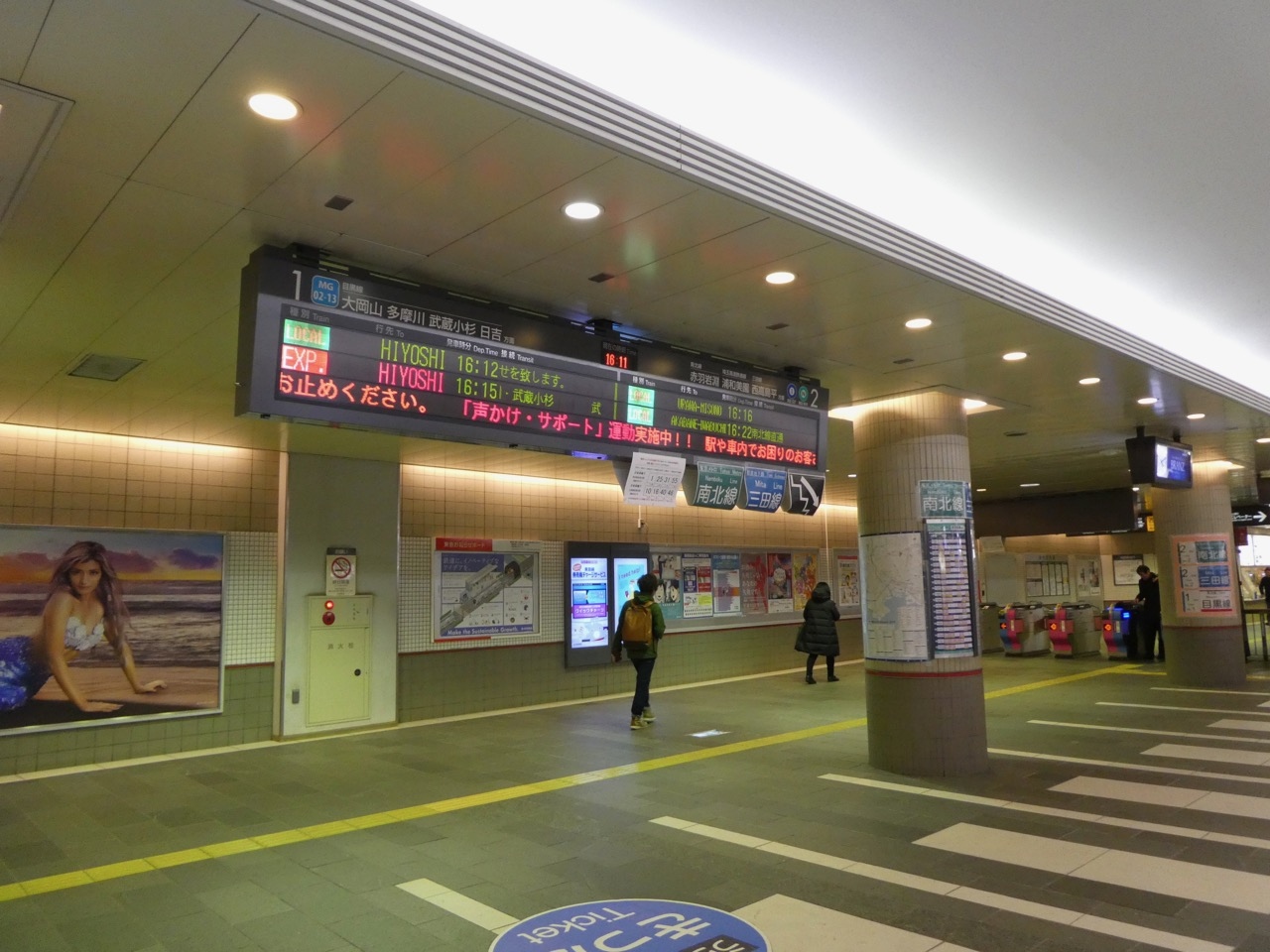 案外空いていて、横浜に行く時、混雑の東横線を避けて日吉までの利用もあり、です。
