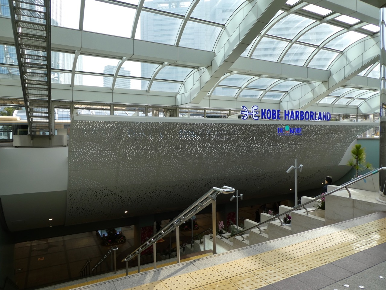 神戸駅の目の前から。ガラス天井の地下道入り口から。またはちょっとはなれた歩道橋から。