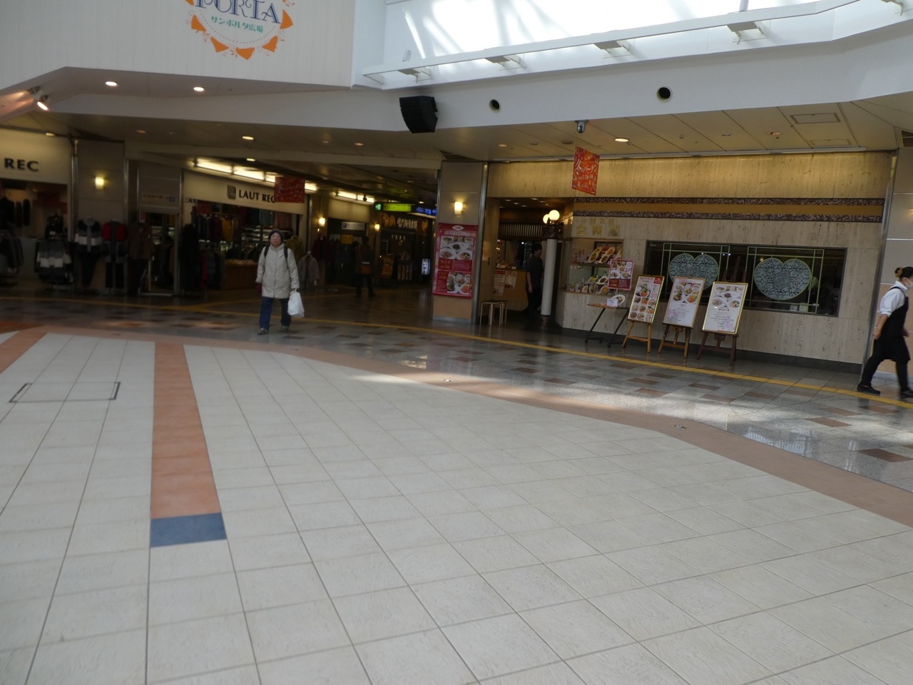 昔から神戸駅と高速神戸駅の間に「サン神戸」という地下街があったのですが、神戸駅の南側に再開発地区のハーバーランドができたときそちらにも地下街ができ、その間を地下道で繋いで「2つの」を意味する「デュオ」をつけてデュオ神戸、というひとつの地下街になりました。なので南北でかなり雰囲気が違います。今回は古くからの北側へ。神戸駅の駅前広場の真ん中にあるガラス天井のドームは健在。明るくて地下街とは思えません。高速神戸駅との間を行き来するお客さんも多く、また庶民的な感じの店も多く朝11時ころなのに行列のある店も。なかなか活気がある感じ。
