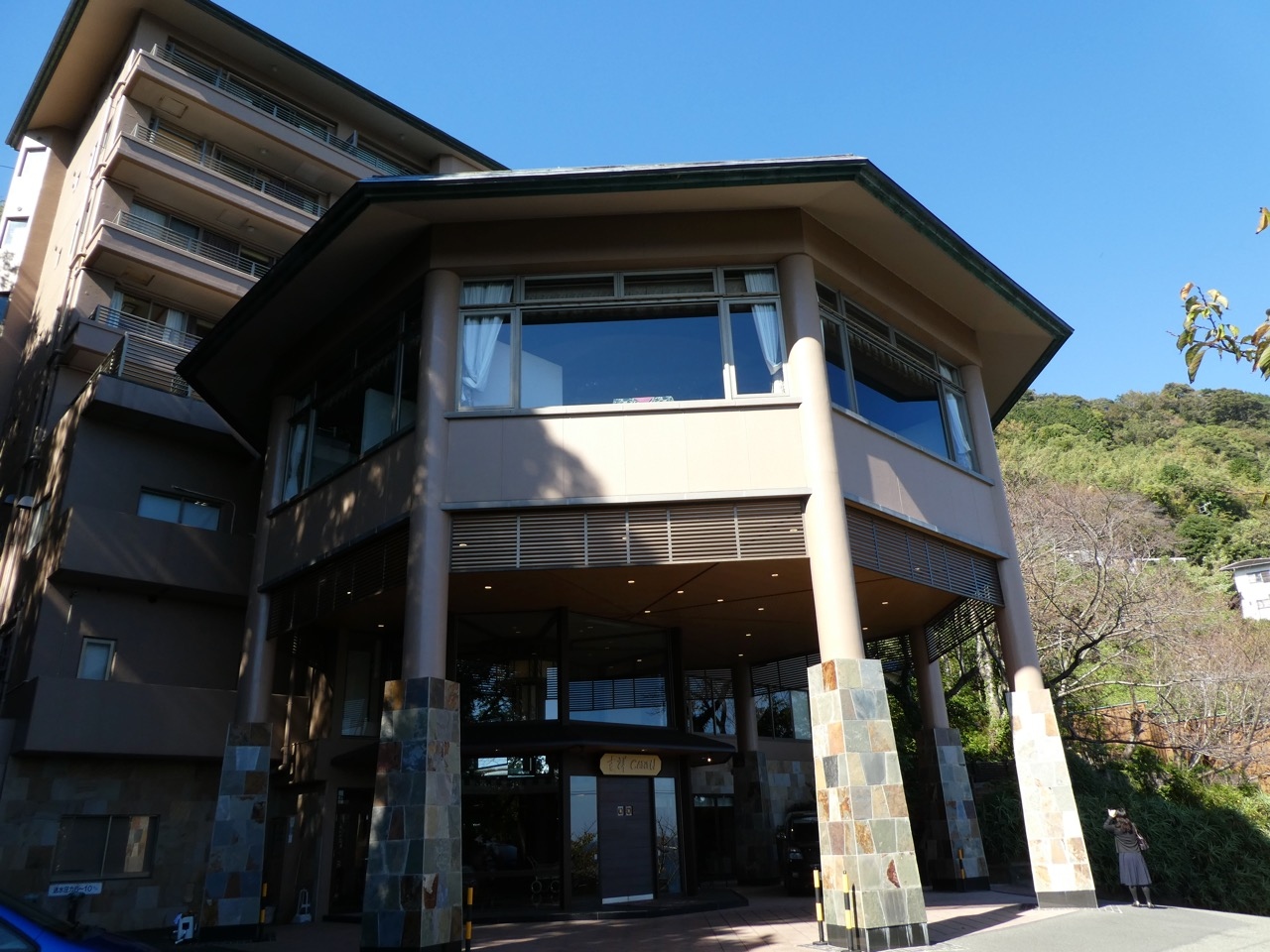 系列の吉祥KARENに宿泊すると、こちらのホテルの貸切露天風呂が無料で利用できる、というので無料送迎バスで移動。つるや吉祥亭が海沿いで、KARENが山の上です。さすがつるや吉祥亭は海岸沿いなので、(道路を隔ててとはいえ)海が目の前の露天風呂は気持ちがいいです。そして湯上りにはつるや横丁という休憩室も兼ねた食事処のような施設もあってゆったりできるのがいいです。KARENが小規模で静かだったのに対してこちらは家族づれが多くにぎやかでした。