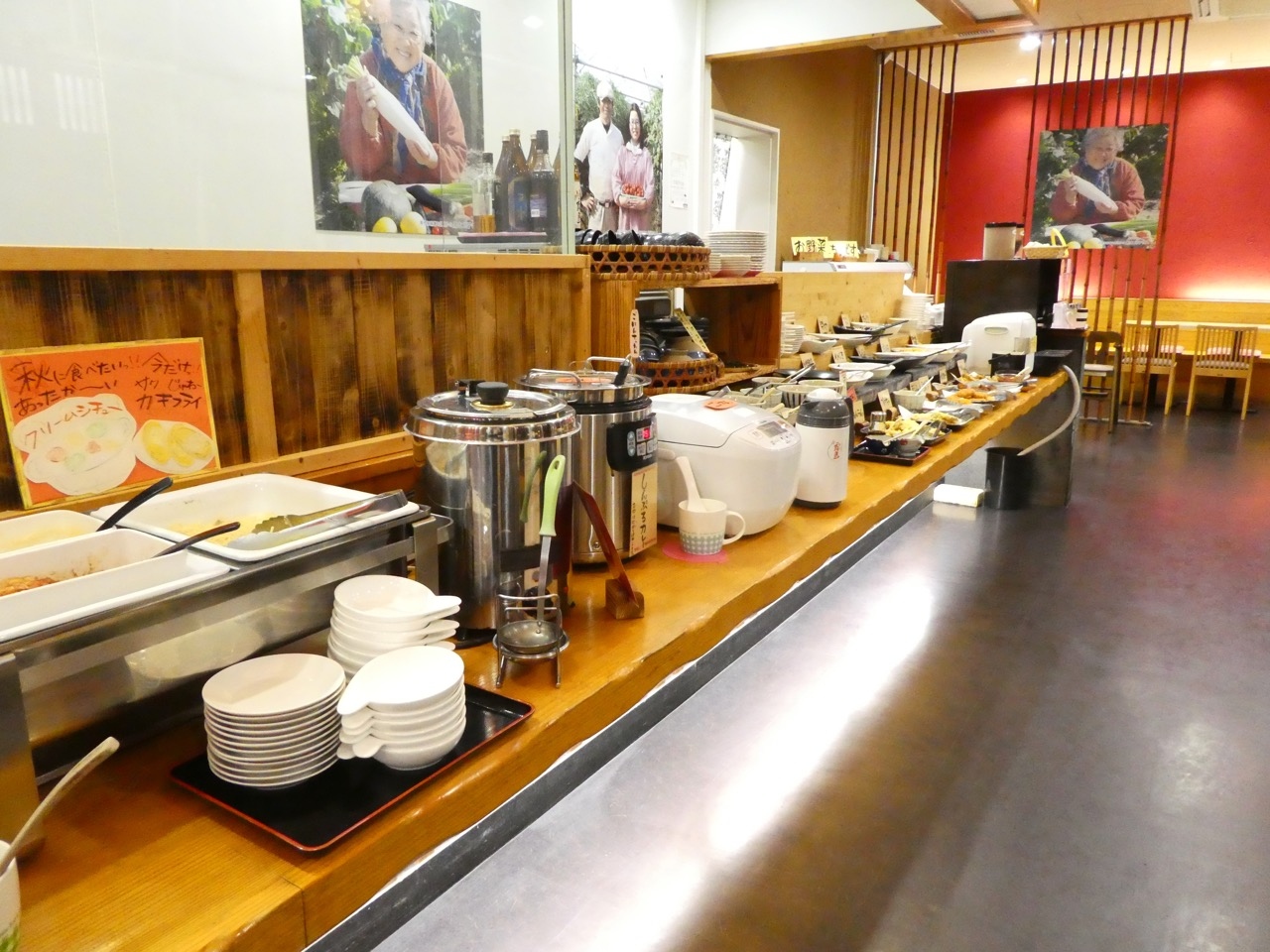 品数はそう多くはないですが、とくに野菜が充実。それも天ぷらが多かったです。クリームシチューもうどんもカレーもあり、時期柄カキフライがありました。