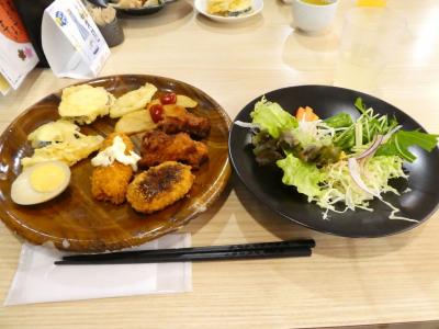 食事処は「農家ばいきんぐ」という店で、「萩の茶屋」と横に書いてあるので、小林と宮崎の間にある萩の茶屋の出店なのだろうと思います。1100円くらいで和食、とくに野菜が充実。時期柄、カキフライがあって満足でした。