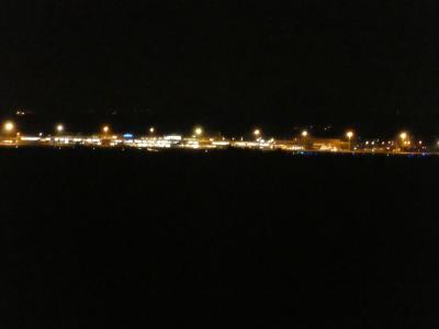 夜の鹿児島空港の眺めもきれいです。飛び立つ飛行機がスローモーションによう。そして旋回してこちらに向かってきます。