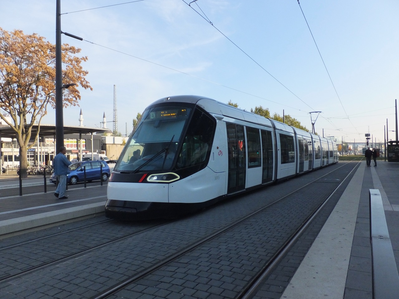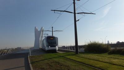 ストラスブールのトラムといえば窓が恐ろしく広いガラスだらけの「ユーロトラム」という電車。このトラム、2017年からなんと国境を越えてドイツのケールという街にまで到達しました。国鉄の線路乗り入れとかでなく、自前の線路でです。ライン川の橋も歩道併設の新しい橋です。訪問日は昼間で15分間隔くらいの運転でした。ただ、有名なユーロトラムはこの国境越えの線区ではみかけませんでした。